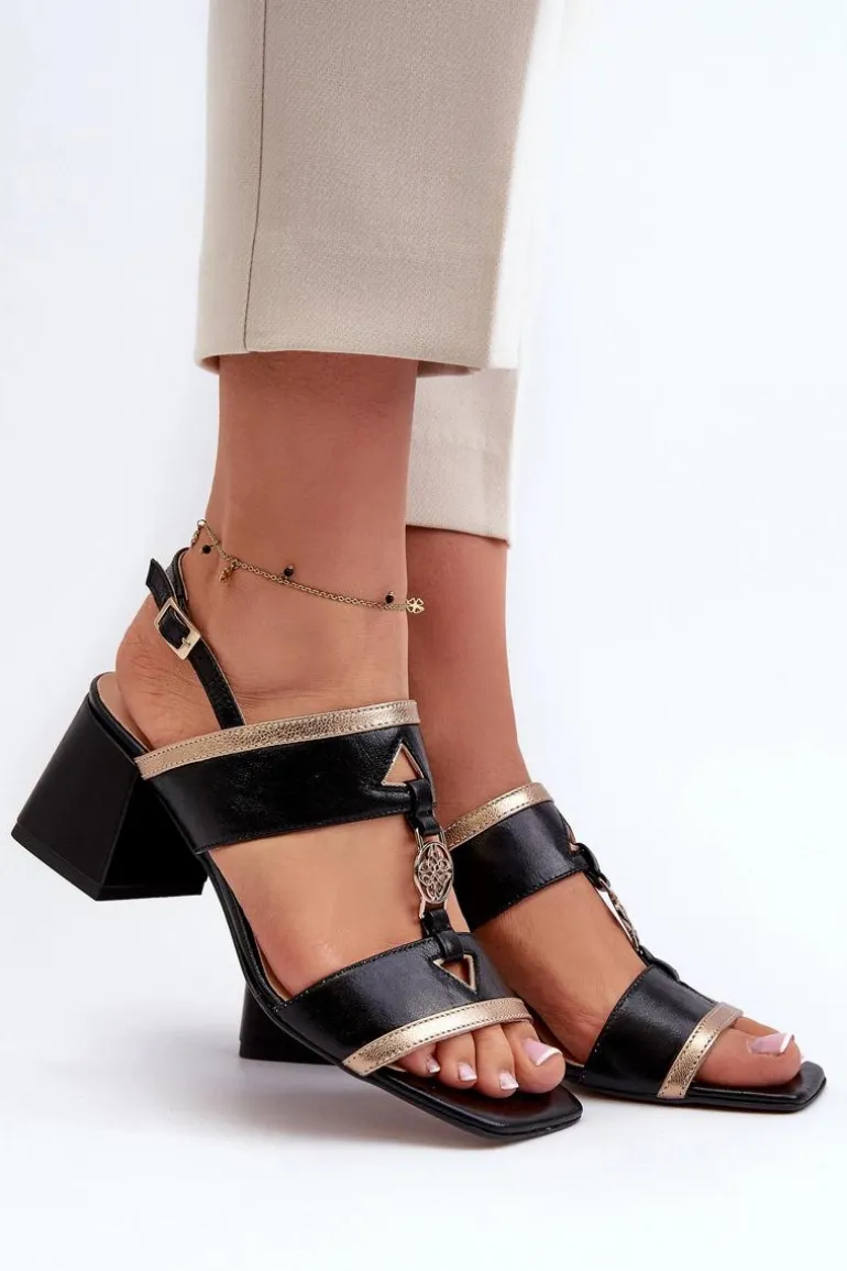 Sandały damskie wykonane ze skóry naturalnej. Osadzone na obcasie w postaci klocka. Zapinane na regulowany pasek ze sprzączką. Model ten będzie pasować do eleganckich spodni, sukienek i spódnic. Przy wyborze rozmiaru prosimy sugerować się tabelą rozmiarów.
