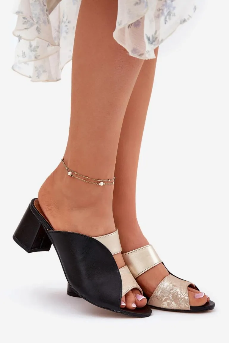 Klapki damskie wykonane z naturalnej skóry to propozycja dla kobiet ceniących elegancję i wygodę. Osadzone na stabilnym obcasie typu słupek, świetnie sprawdzą się zarówno na co dzień, jak i podczas bardziej formalnych okazji. Model ten posiada miękką wkładkę, która zapewni komfort na każdym kroku. Idealny wybór na letnie dni, zarówno do eleganckich, jak i codziennych stylizacji. Przy wyborze rozmiaru prosimy sugerować się tabelą rozmiarów.
