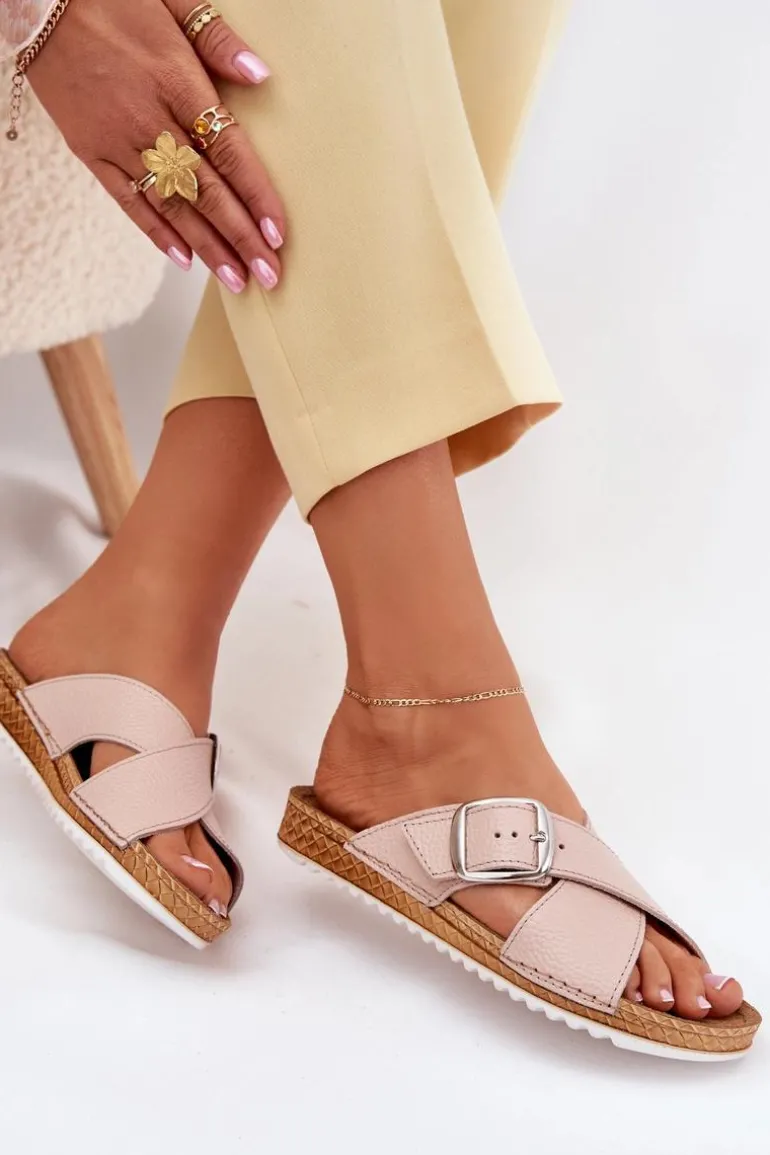 Klapki damskie od marki Inblu, wykonane z naturalnej skóry. Model ten wyposażony jest w regulowany pasek z klamrą, który zapewnia idealne dopasowanie do stopy. Lekkie i elastyczne, gwarantują wygodę przez cały dzień, doskonale komponując się z codziennymi stylizacjami. Przy wyborze rozmiaru prosimy sugerować się tabelą rozmiarów.