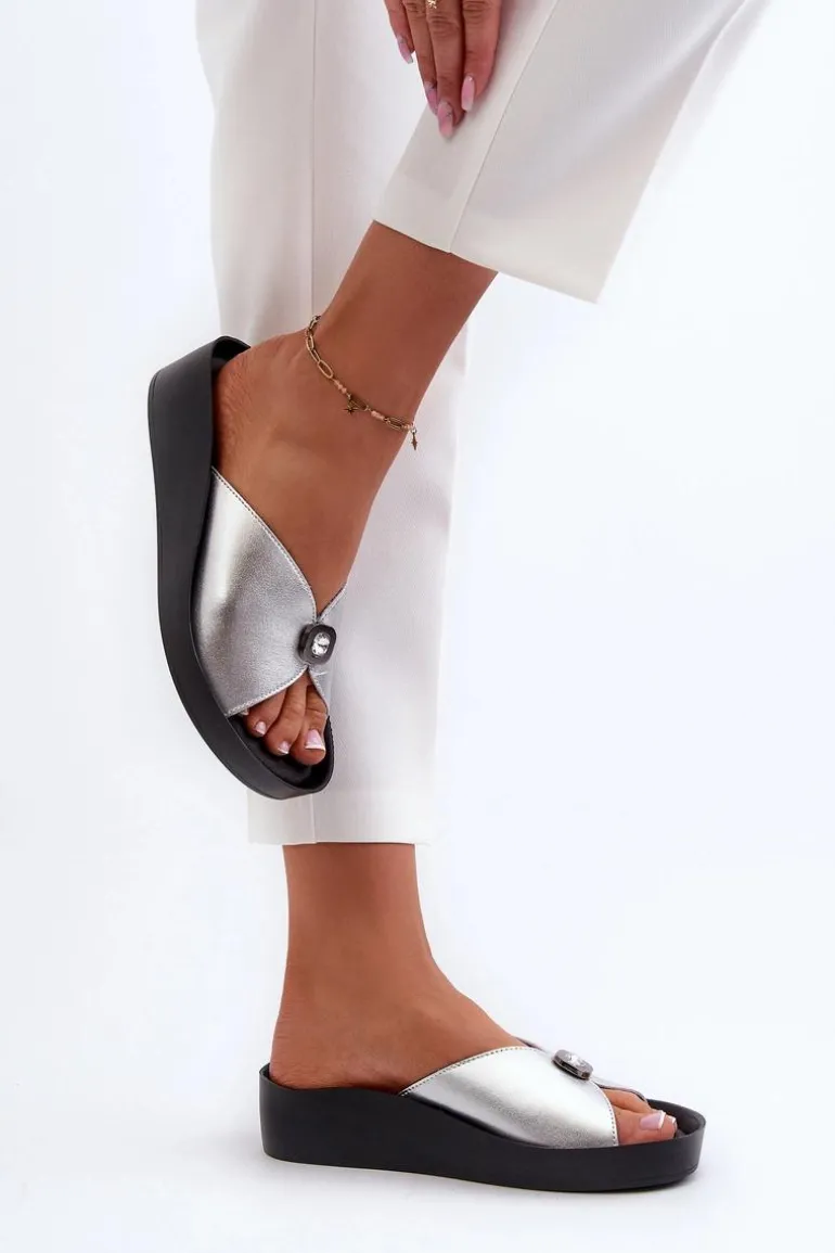 Eleganckie klapki damskie od marki S.Barski. Wykonane ze skóry naturalnej. Mały detal na przodzie. Niski koturn doskonale sprawdzi się w codziennych stylizacjach. Koniecznie powinnaś mieć je w swojej letniej garderobie! Przy wyborze rozmiaru prosimy sugerować się tabelą rozmiarów.