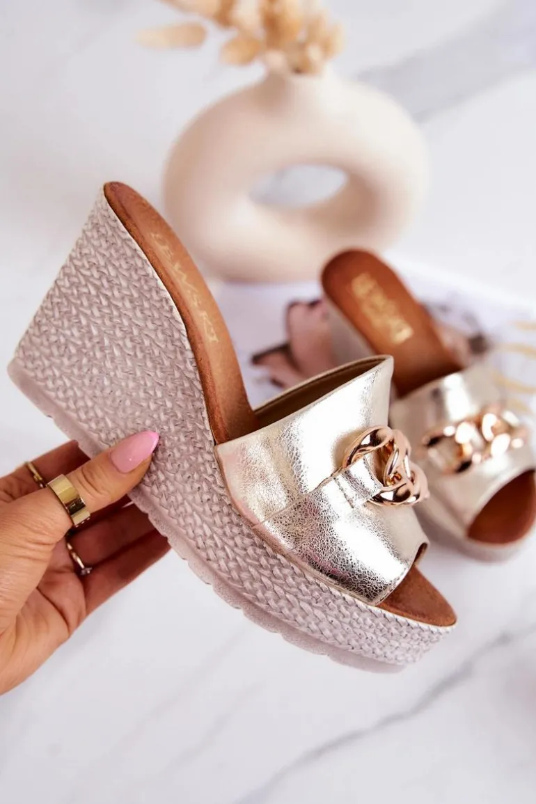 Eleganckie klapki od polskiej firmy Lewski Shoes. Buty wykonane są w całości ze skóry naturalnej z dbałością o każdy detal. Ozdobny łańcuch dodaje elegancji tym butom. Miękka, skórzana wkładka zadba o Twój komfort i wygodę. Obcas w postaci koturnu uniesie delikatnie Twoją sylwetkę. Koniecznie sprawdź całą naszą kolekcję skórzanych klapek! Przy wyborze rozmiaru prosimy sugerować się tabelą rozmiarów.