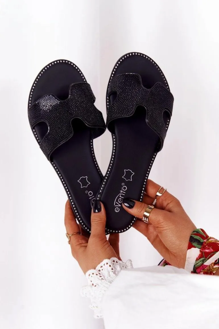 Eleganckie klapki z cyrkoniami. Buty wykonane są ze skóry ekologicznej z dbałością o każdy detal. Miękka wkładka ze skóry naturalnej oraz antypoślizgowa podeszwa zadbają o Twój komfort. Klapki dopełnią wiele letnich stylizacji! Koniecznie sprawdź całą naszą kolekcję damskich klapek. Przy wyborze rozmiaru prosimy sugerować się tabelą rozmiarów.