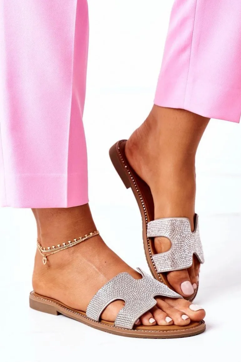 Eleganckie klapki z cyrkoniami. Buty wykonane są ze skóry ekologicznej z dbałością o każdy detal. Miękka wkładka ze skóry naturalnej oraz antypoślizgowa podeszwa zadbają o Twój komfort. Klapki dopełnią wiele letnich stylizacji! Koniecznie sprawdź całą naszą kolekcję damskich klapek. Przy wyborze rozmiaru prosimy sugerować się tabelą rozmiarów.