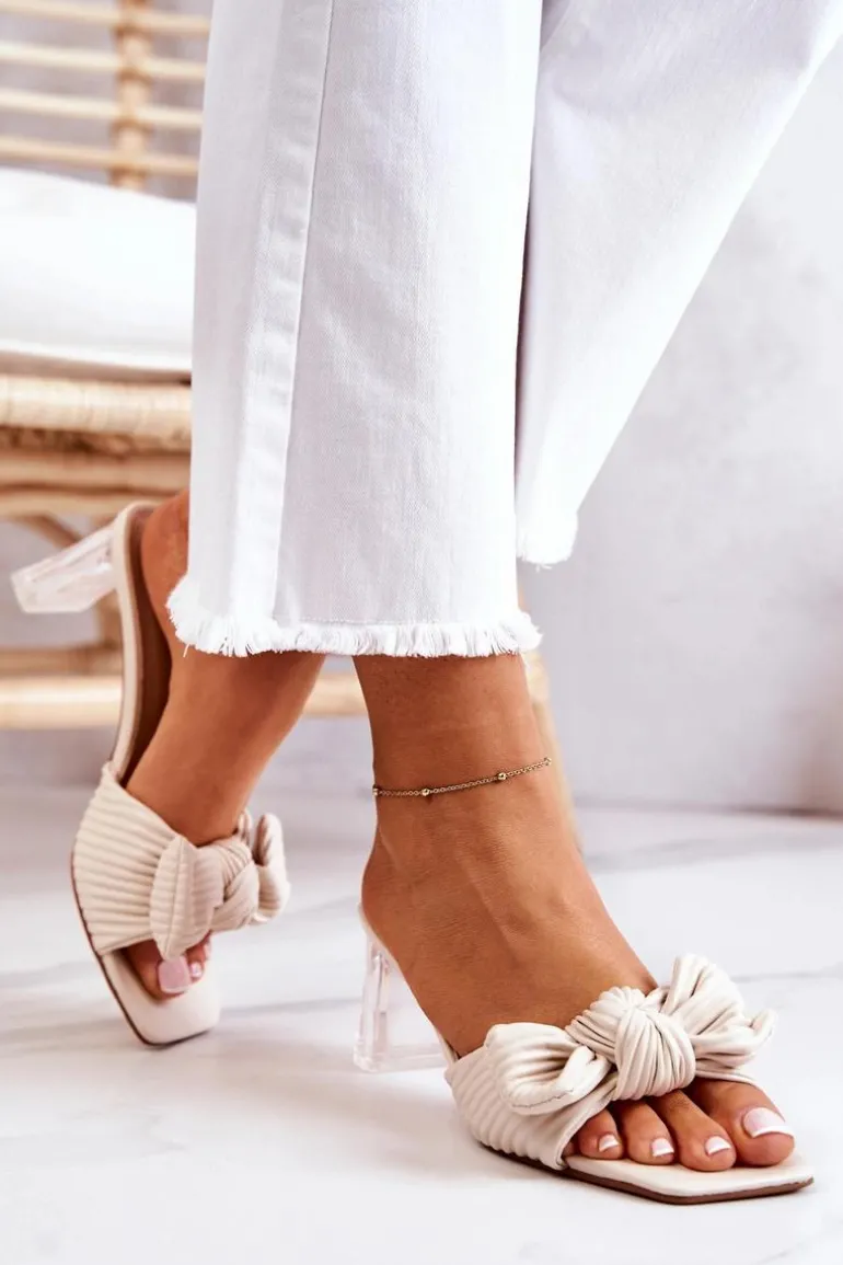 Skórzane Klapki Z Kokardą Beżowe Rosalee