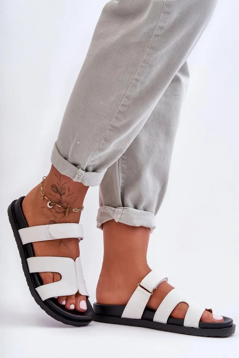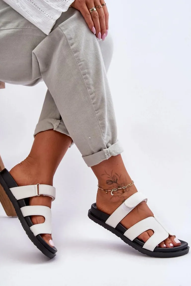 Klasyczne, wygodne klapki damskie zostały wykonane z eko skóry. Buty te zostały osadzone na lekkiej platformie. Dobrze wyprofilowana wkładka zapewni komfort podczas użytkowania. Model ten został wzbogacony o zapięcie na rzep, dzięki któremu obuwie można dopasować do tęgości nogi. Przy wyborze rozmiaru prosimy sugerować się tabelą rozmiarów.