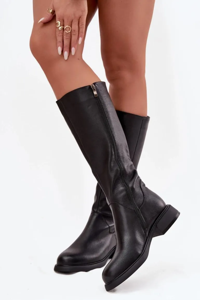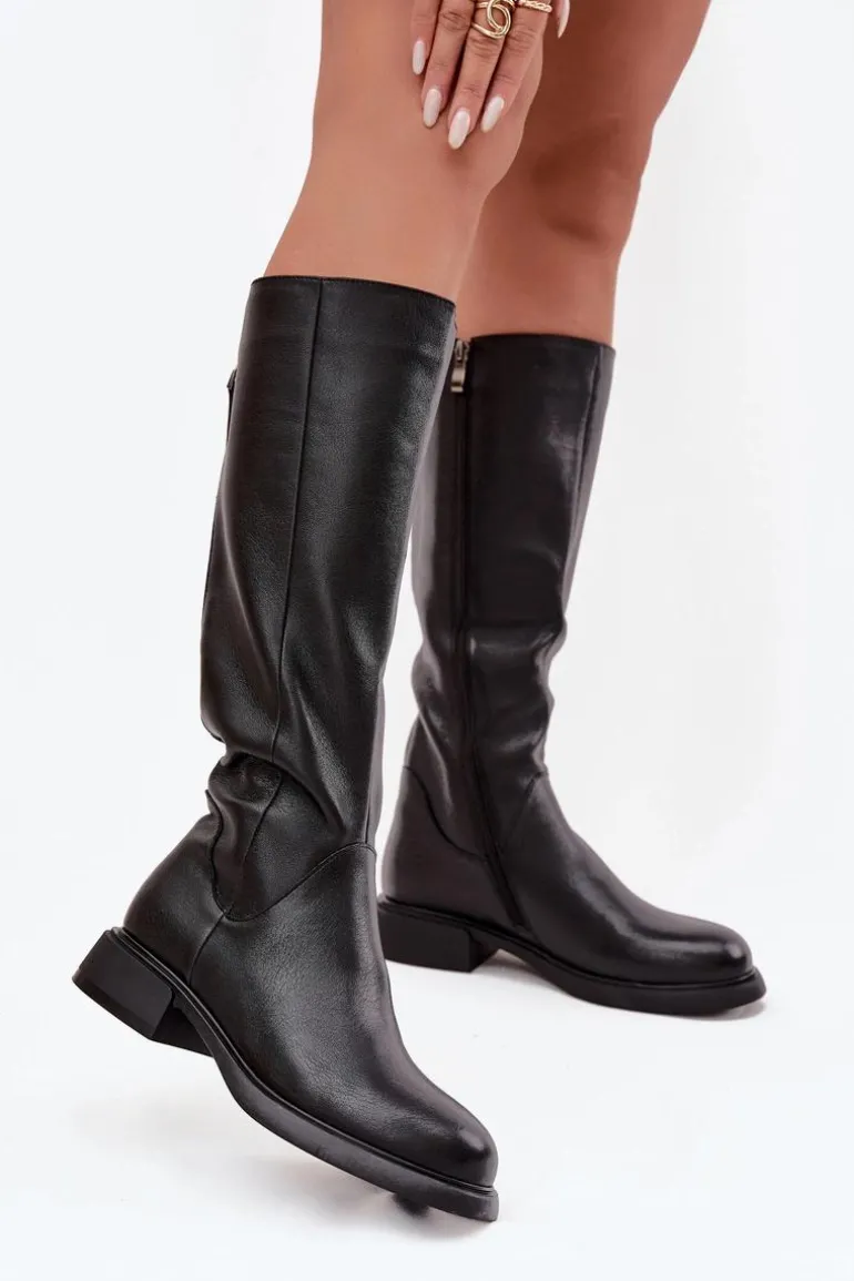 Kozaki damskie wykonane z naturalnej skóry to połączenie elegancji, jakości i wygody. Model osadzony jest na płaskim obcasie zapewnia komfort noszenia przez cały dzień, a ocieplane wnętrze doskonale sprawdza się w chłodniejsze dni. Buty zapinane są na zamek, co ułatwia ich zakładanie, natomiast ozdobny zamek z tyłu dodaje całości nowoczesnego i stylowego charakteru. To uniwersalny model, który świetnie prezentuje się zarówno z dopasowanymi spodniami typu skinny i legginsami, jak i z sukienkami czy spódnicami. Idealny wybór dla kobiet ceniących ponadczasowy wygląd i wygodę każdego dnia. Przy wyborze rozmiaru prosimy sugerować się tabelą rozmiarów.