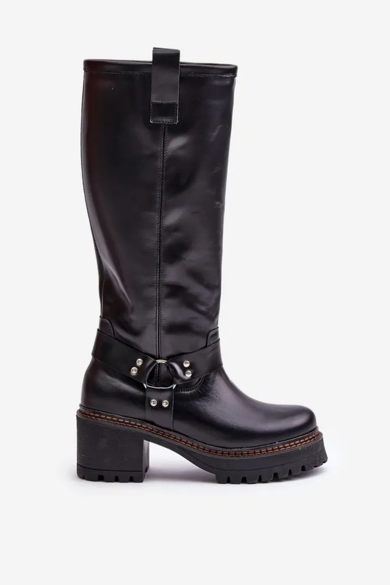 Kozaki damskie wykonane z wysokiej jakości skóry naturalnej. Osadzone na masywnym obcasie i platformie, co zapewni stabilność na każdym kroku. Noski zaokrąglone. Model wsuwany oraz dodatkowo posiada zapięcie na zamek. Nie posiadają ocieplenia. Ten elegancki fason świetnie sprawdzi się w wielu stylizacjach! Przy wyborze rozmiaru prosimy sugerować się tabelą rozmiarów.