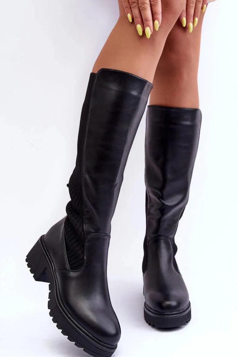 Damskie, klasyczne kozaki zostały wykonane z połączenia eko skóry i tkaniny. Cholewka do połowy łydki z elastycznymi wstawkami w formie skarpety. Wewnątrz ocieplone kocem obuwniczym. Zapiętek jest usztywniony. Miękka wkładka zapewni komfortowe użytkowanie. Model ten jest wsuwany. Przy wyborze rozmiaru prosimy kierować tabelą rozmiarów.