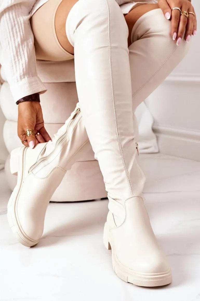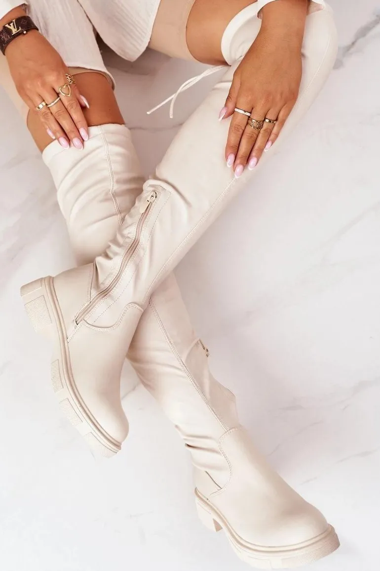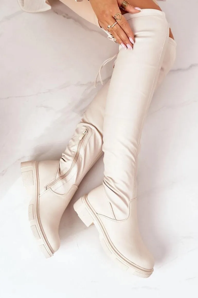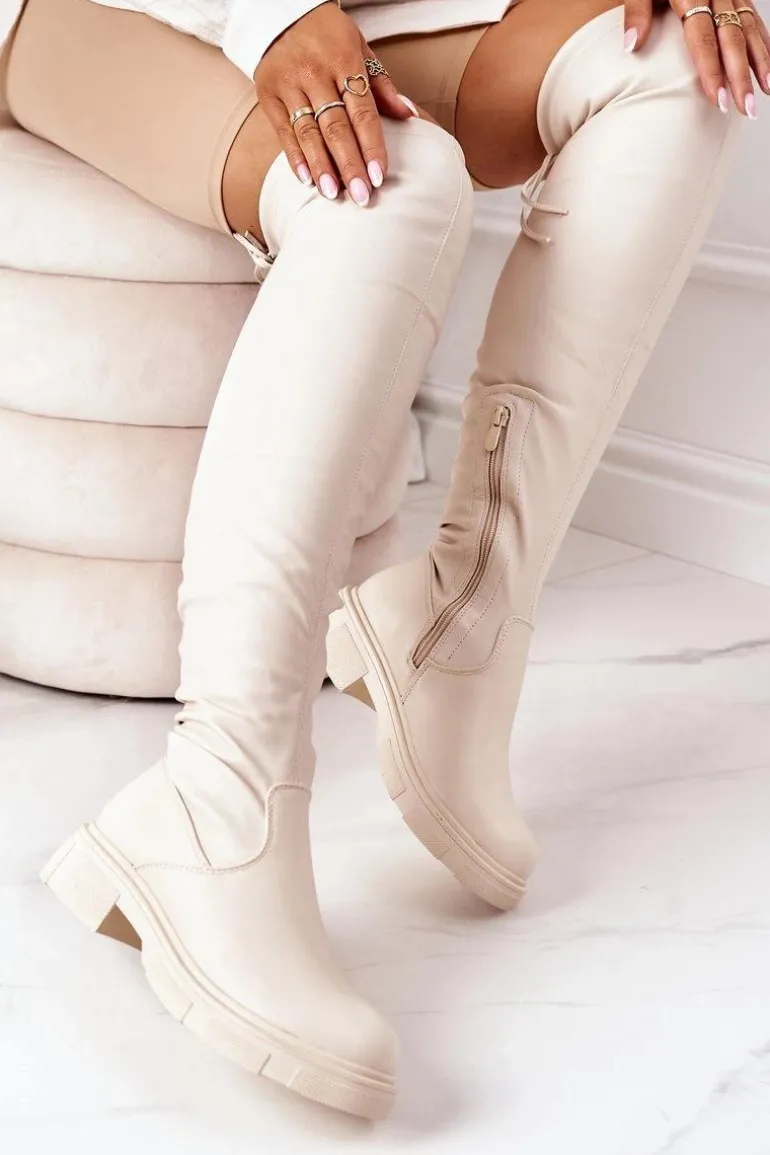 Kozaki za kolano wykonane z miękkiej skóry ekologicznej. Wszyty suwak ułatwi zakładanie.
