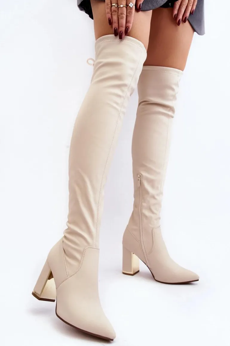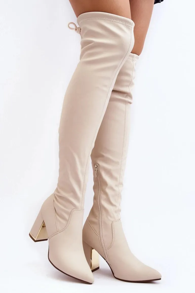 Kozaki damskie z cholewką za kolano. Wykonane z eko skóry. Osadzone na obcasie w postaci słupka, który wzbogacony został lustrzanym elementem. Na górze cholewki znajduje się wiązanie. Model wsuwany z dodatkowym suwakiem. W środku ocieplone na wysokości stopy. Idealny model do sukienek mini czy spódniczek. Koniecznie powinnaś je mieć! Przy wyborze rozmiaru prosimy sugerować się tabelą rozmiarów.