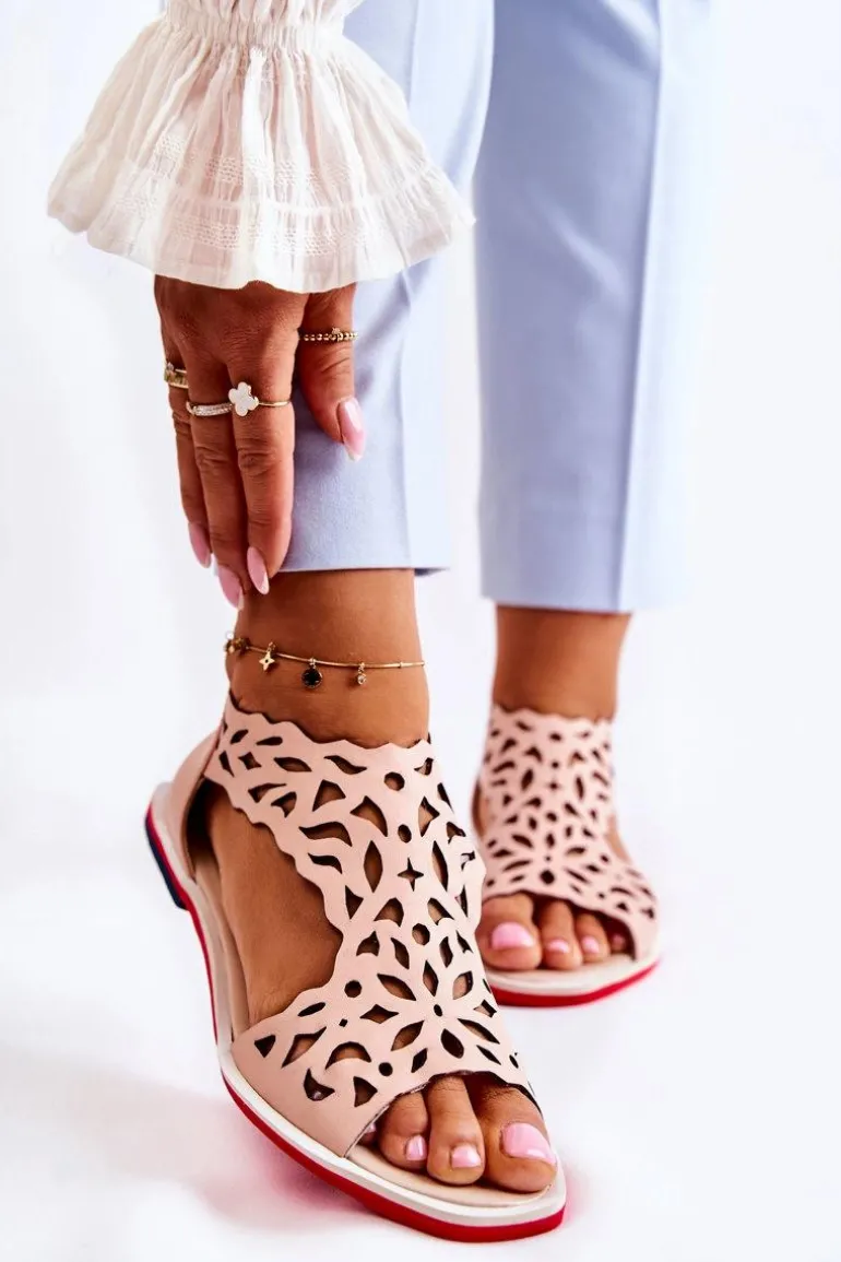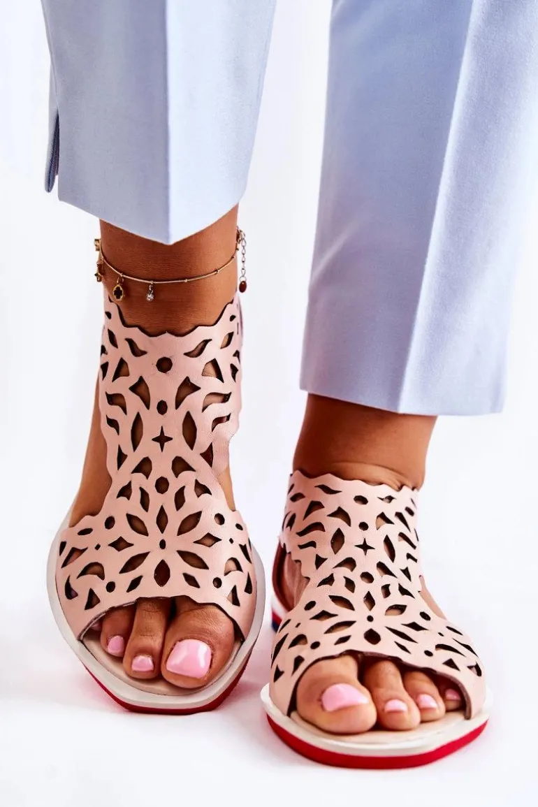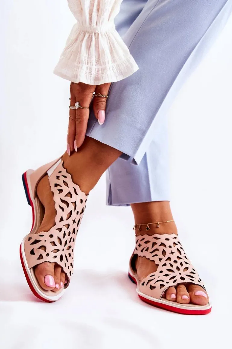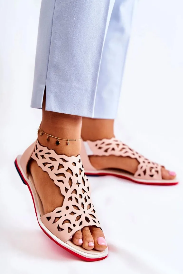 Damskie sandały zostały wykonane z naturalnej skóry w ażurowy wzór. Z boku cholewki posiadają gumkę. Zapiętek usztywniany z suwakiem. Buty są osadzone na płaskim obcasie. Sandały posiadają odkryty nosek. Miękka wkładka została także wykonana z naturalnej skóry. Lekki i przewiewny fason świetnie sprawdzi się w upalne dni. Koniecznie powinnaś je mieć! Przy wyborze rozmiaru prosimy sugerować się tabelą rozmiarów.