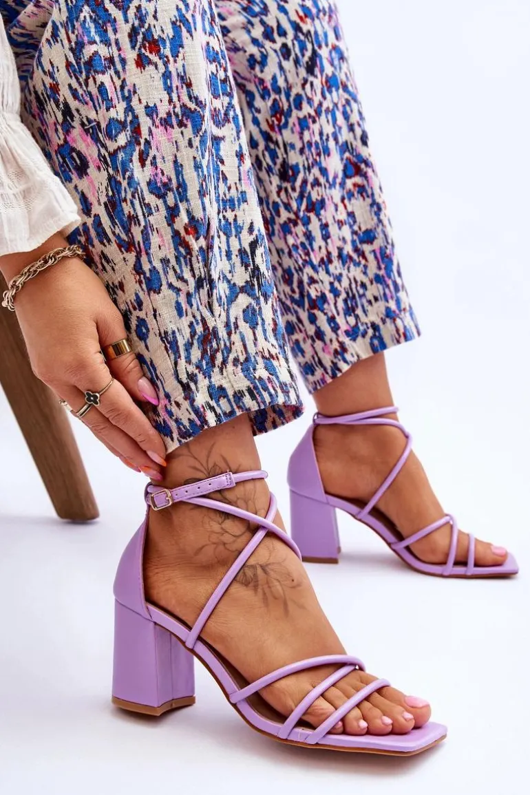 Modne sandałki na masywnym obcasie w postaci słupka zostały wykonane z eko skóry. Model ten posiada regulowany pasek zapinany na sprzączkę. Sandałki posiadają odkryty, kwadratowy nosek. Miękka wkładka została wykonana z eko skóry, co pozwoli na komfortowe użytkowanie obuwia. Idealny model do wielu stylizacji! Przy wyborze rozmiaru prosimy sugerować się tabelą rozmiarów.