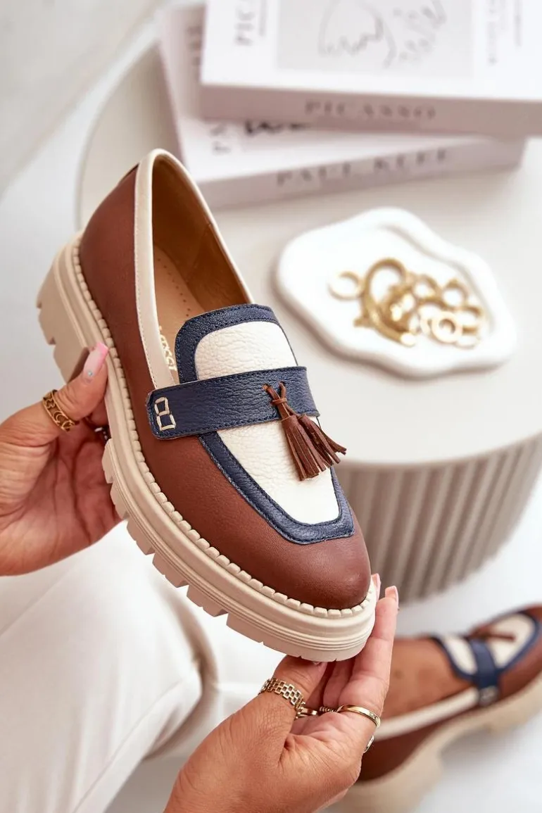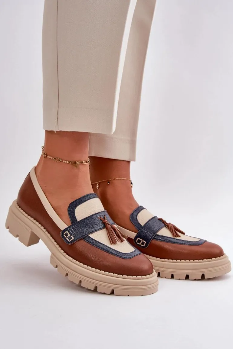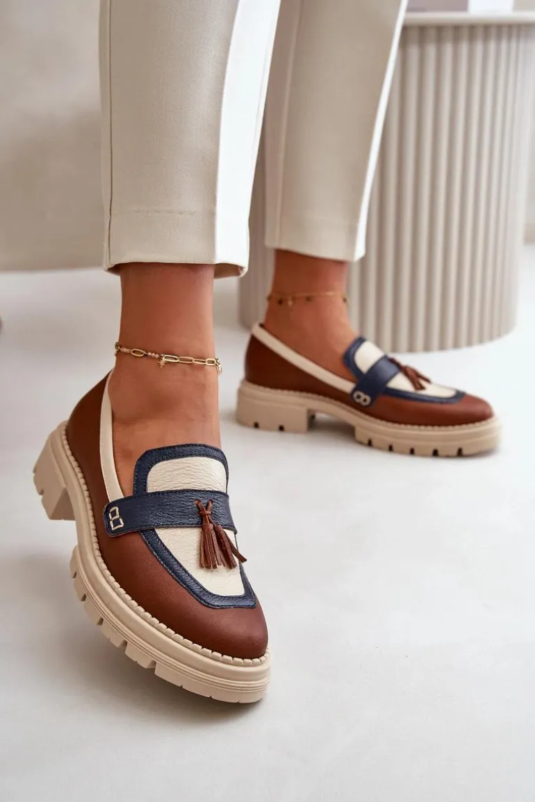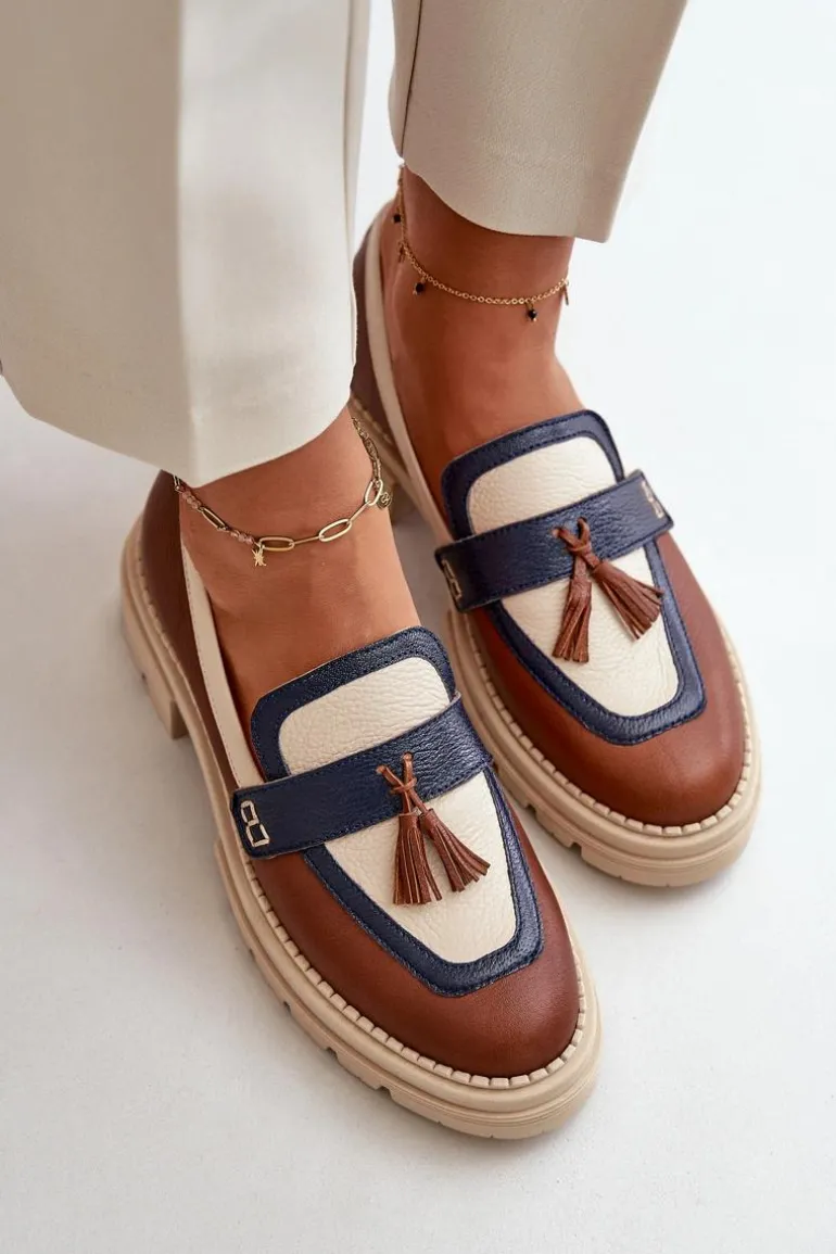 Skórzane mokasyny damskie to eleganckie obuwie, idealne zarówno do codziennych, jak i bardziej formalnych stylizacji. Wykonane z wysokiej jakości skóry, mokasyny te zapewniają komfort i trwałość. Noski są zaokrąglone. Przód mokasynów jest ozdobiony dekoracyjnym paskiem, który dodatkowo wzbogacony jest frędzelkami, dodającymi całości subtelnego, lecz wyrazistego charakteru. Ich design jest nie tylko stylowy, ale również funkcjonalny – skóra naturalna zapewnia oddychalność, a miękka, skórzana wkładka dba o komfort noszenia przez cały dzień. Mokasyny te stanowią doskonały wybór dla kobiet ceniących połączenie klasyki z modnym akcentem. Przy wyborze rozmiaru prosimy sugerować się tabelą rozmiarów.