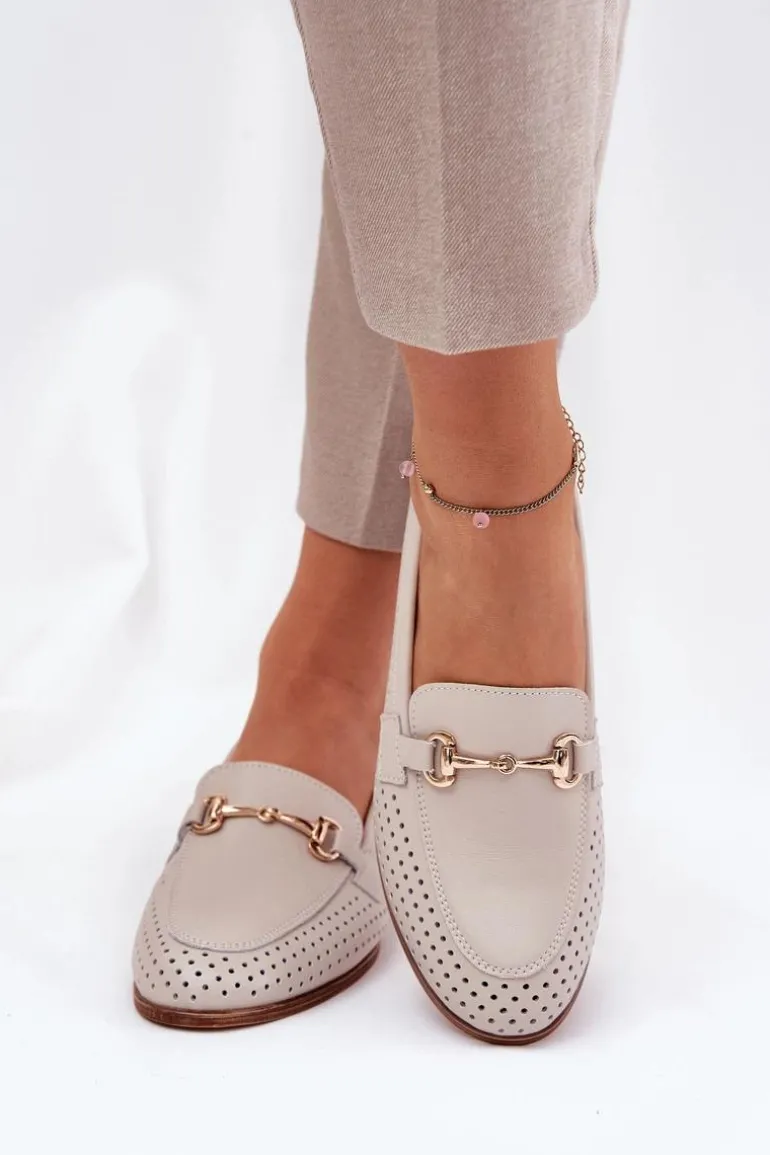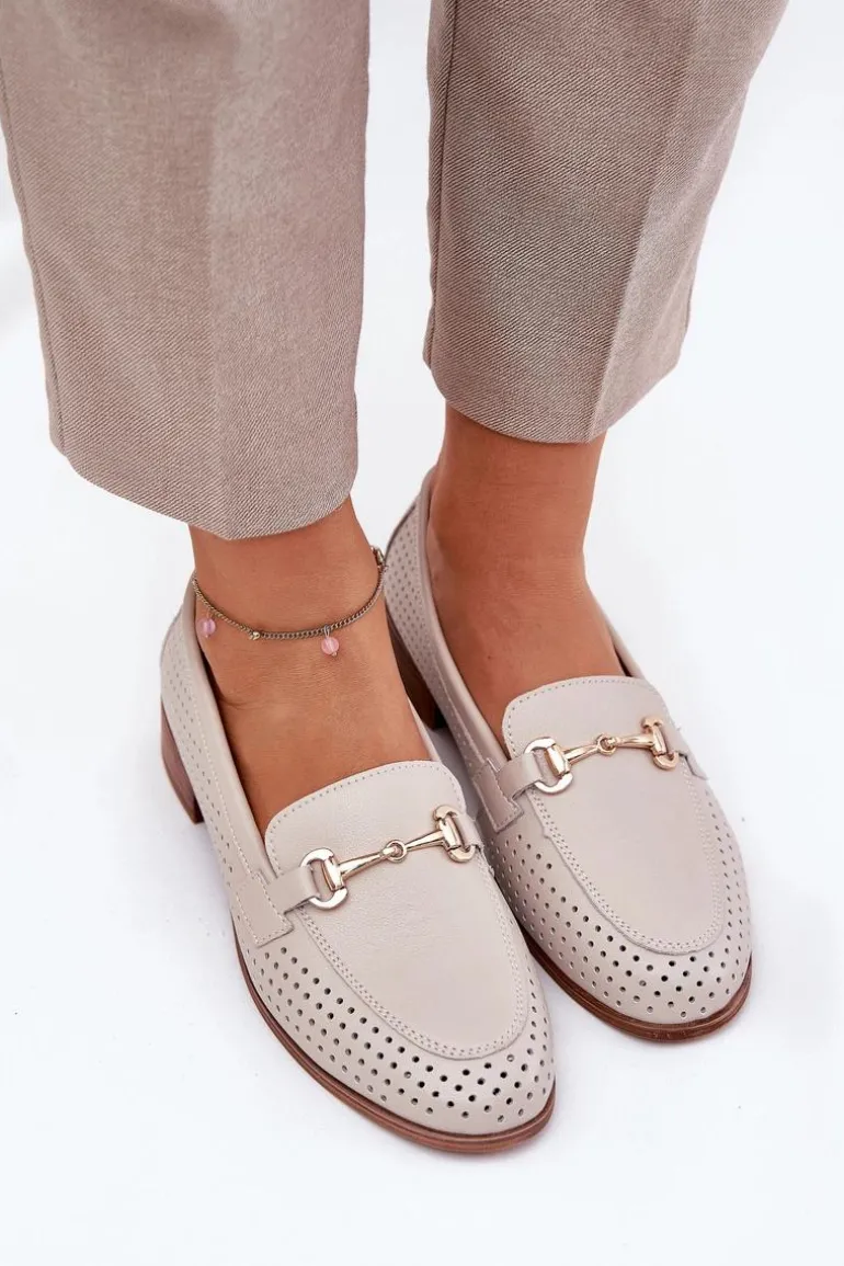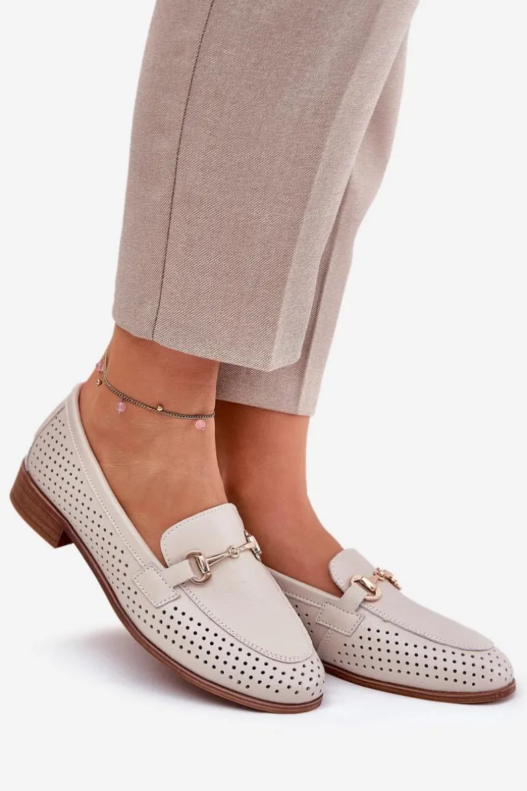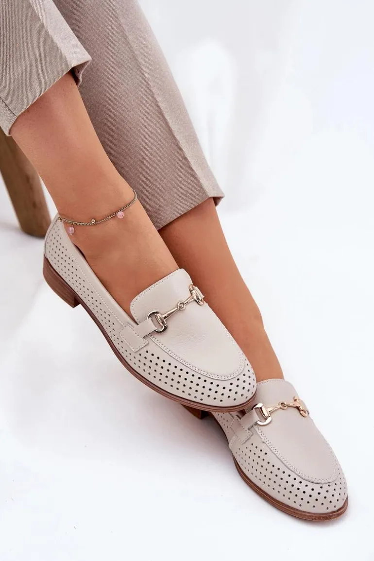Mokasyny damskie wykonane z naturalnej skóry. Osadzone na płaskim obcasie. Noski zaokrąglone. Miękka wkładka zapewni wygodę na każdym kroku. Dodatkowy element ozdobny z przodu nadaje im wyjątkowego uroku. Bez względu na to, czy wybierasz się na spotkanie ze znajomymi, czy na bardziej formalne wydarzenie, te mokasyny będą idealnym dopełnieniem Twojego looku, dodając mu nuty subtelnej elegancji. Przy wyborze rozmiaru prosimy sugerować się tabelą rozmiarów.