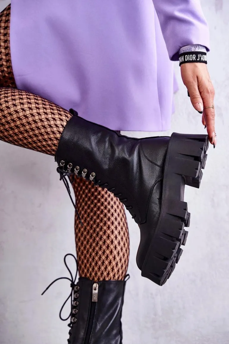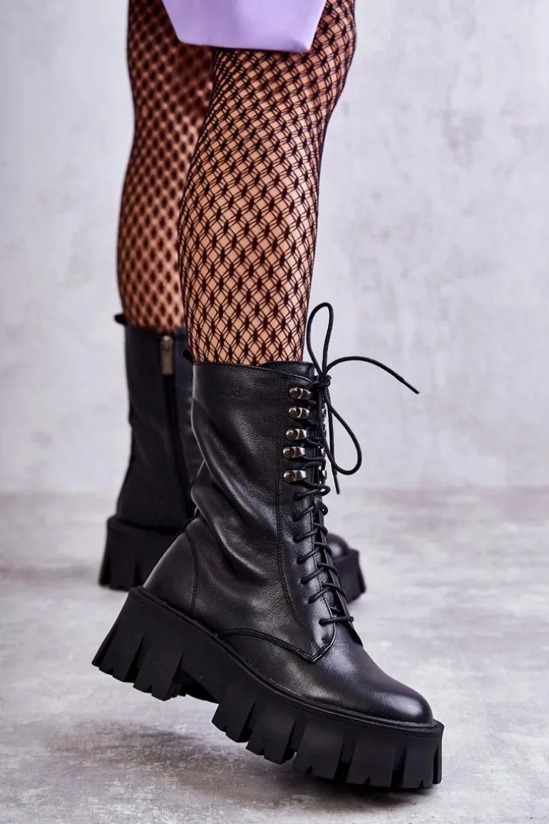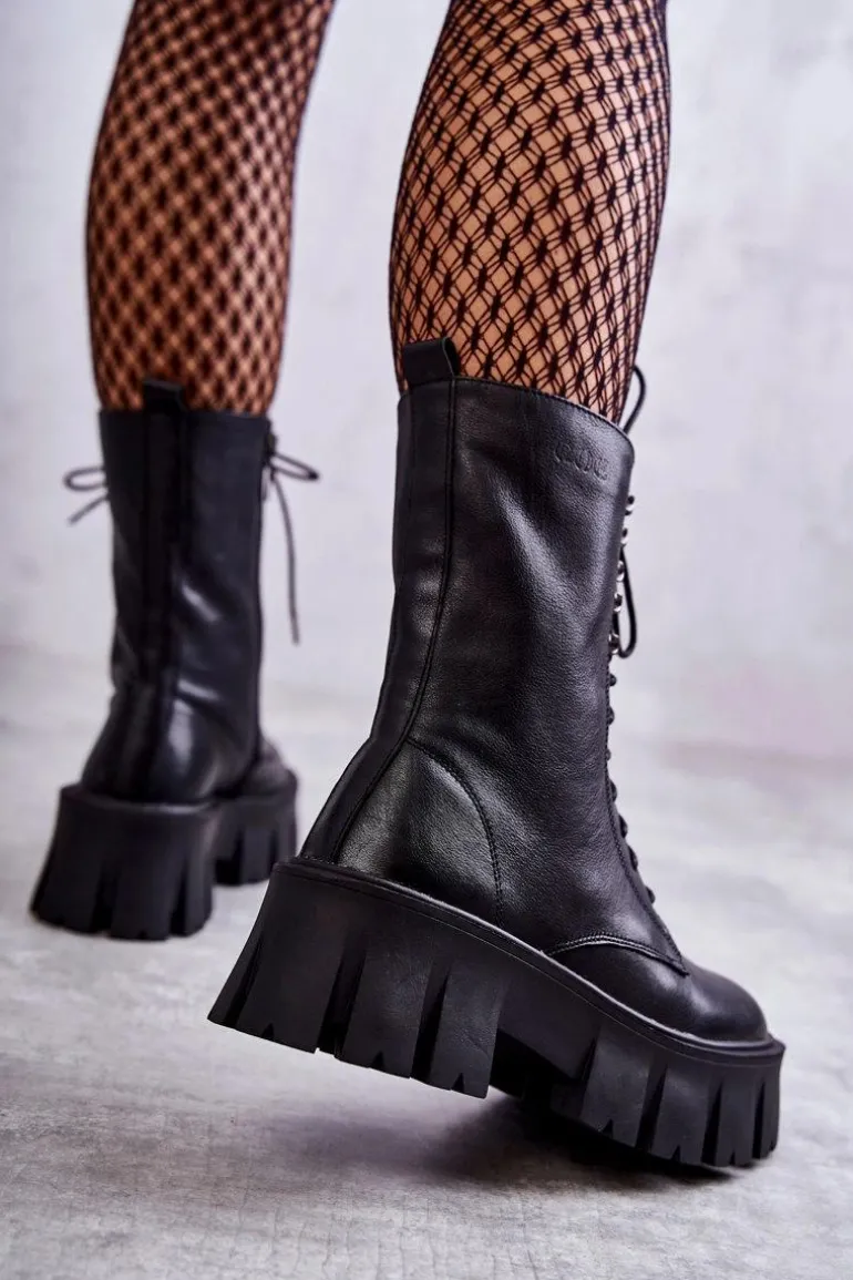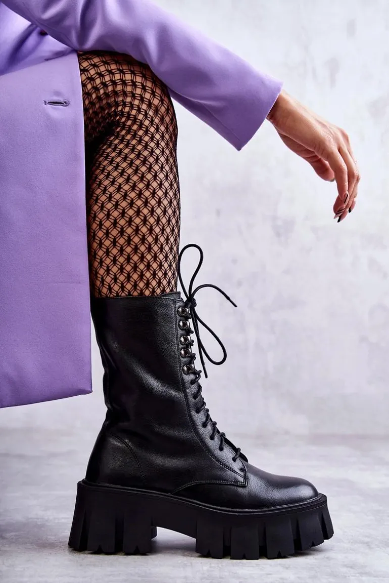 Świetne, wysokie botki damskie od marki GOE to MUST HAVE tego sezonu! Wykonane z naturalnej skóry z usztywnianym zapiętkiem. Model ten jest sznurowany oraz zapinany z boku cholewki na suwak. Buty zostały osadzone na płaskim obcasie i masywnej platformie. Niezwykle stabilny model. Posiadają ocieplenie w postaci koca obuwniczego. Wkładka wykonana z eko skóry jest miękka i wygodna. Przy wyborze rozmiaru prosimy sugerować się tabelą rozmiarów.