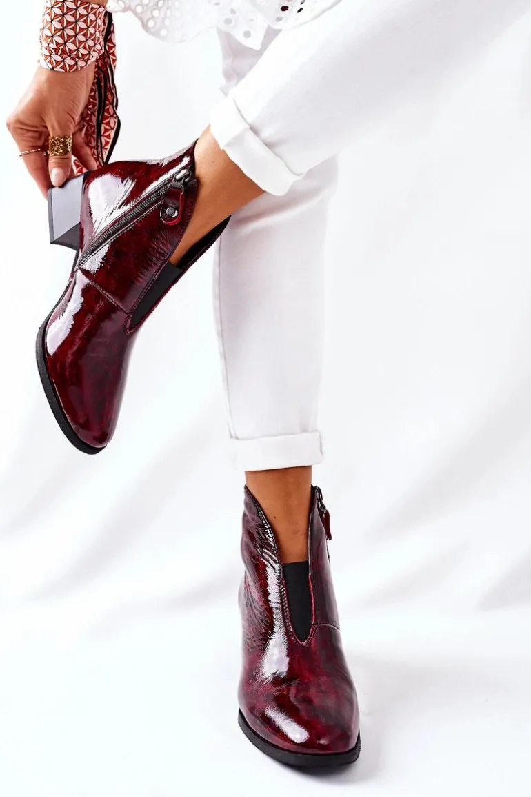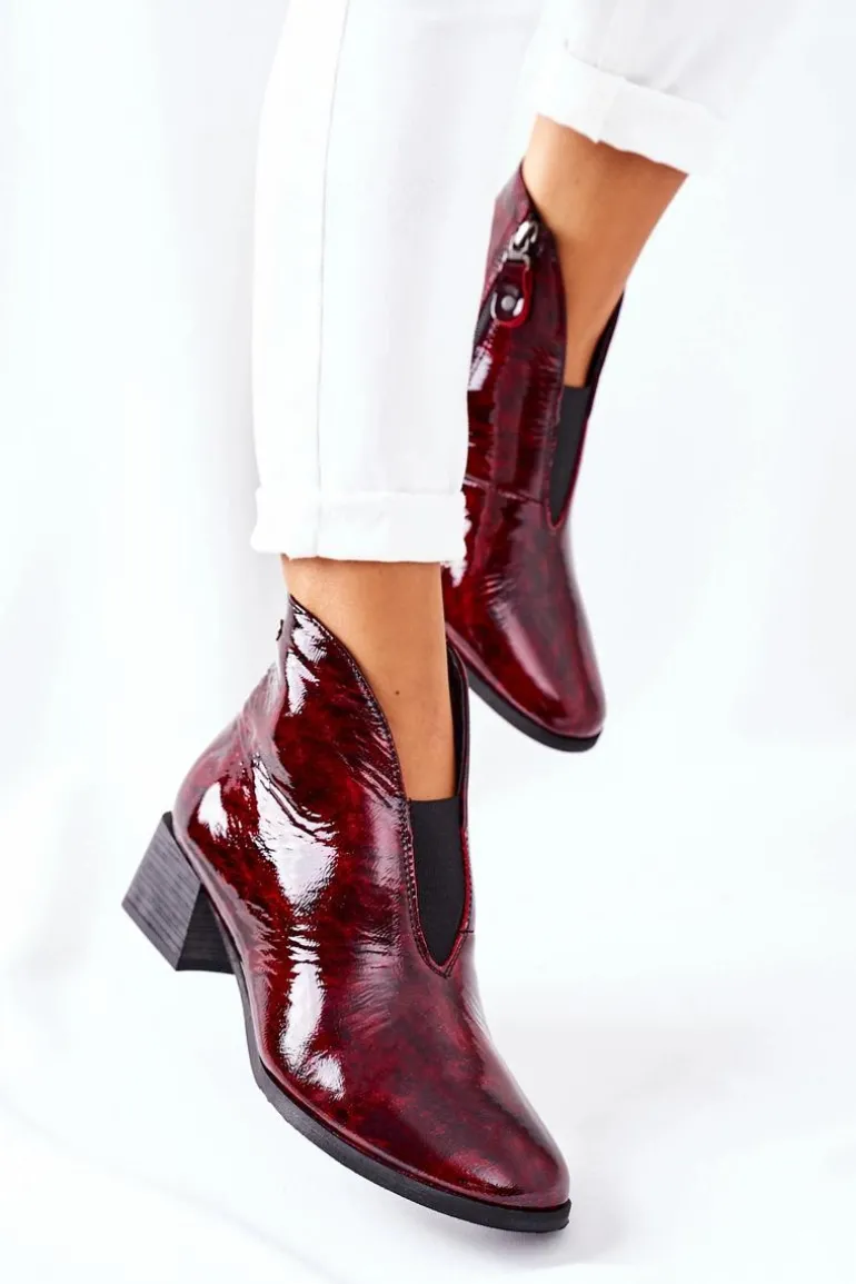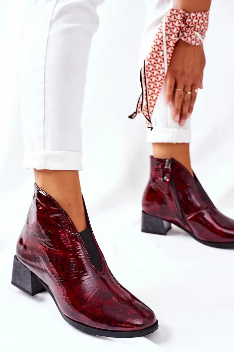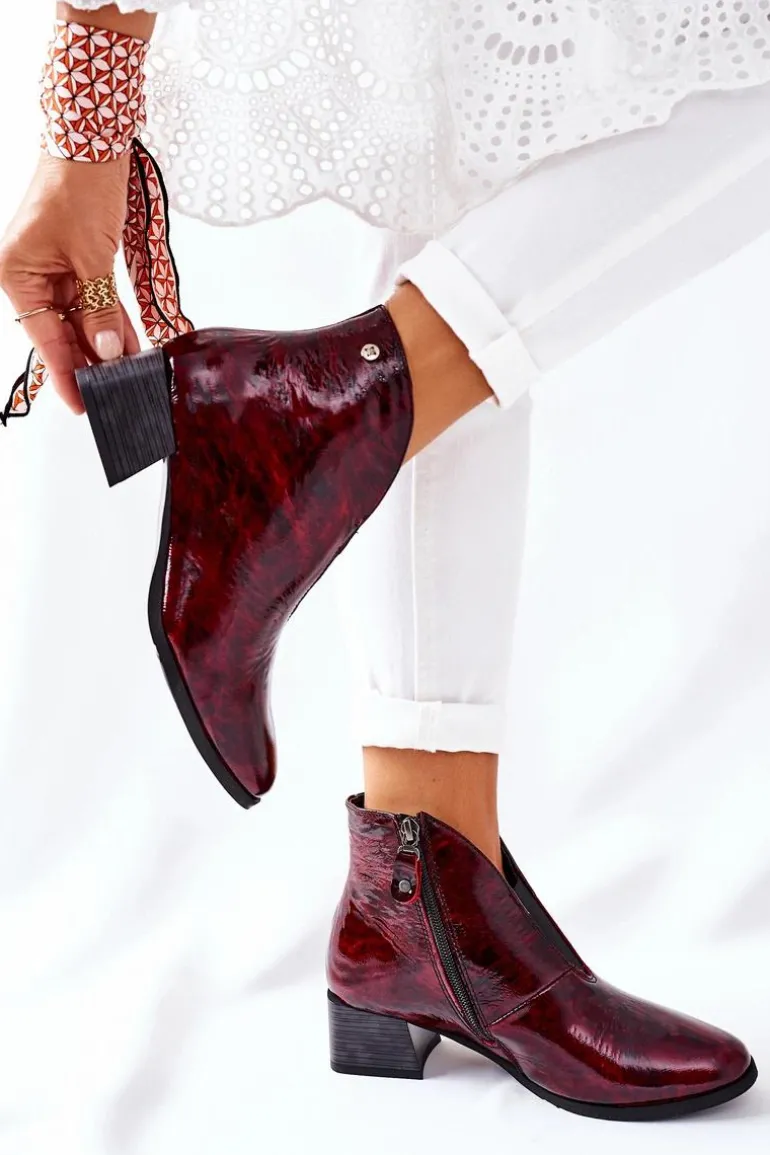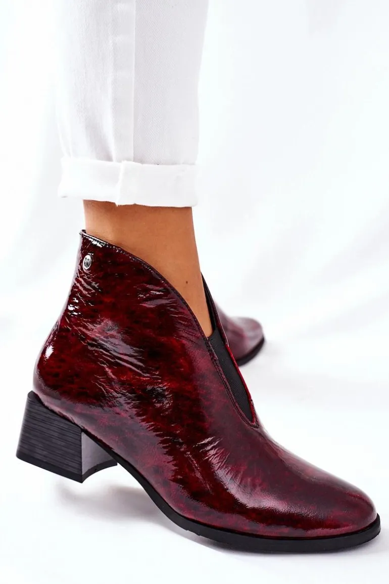 Skórzane Ocieplane Botki Na Obcasie Maciejka 04777-23 Bordo
