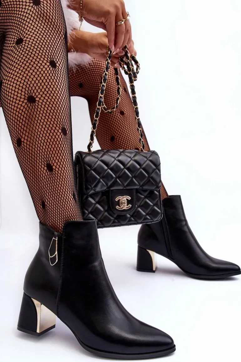 Botki damskie osadzone na obcasie w postaci słupka. Cholewka zapinana na suwak. Wykonane z eko skóry. Środek ocieplony kocem obuwniczym. Noski w szpic, usztywniony zapiętek. Idealne do wielu jesienno-zimowych stylizacji! Koniecznie sprawdź także pozostałe modele botków dostępnych w naszej ofercie. Przy wyborze rozmiaru prosimy sugerować się tabelą rozmiarów.