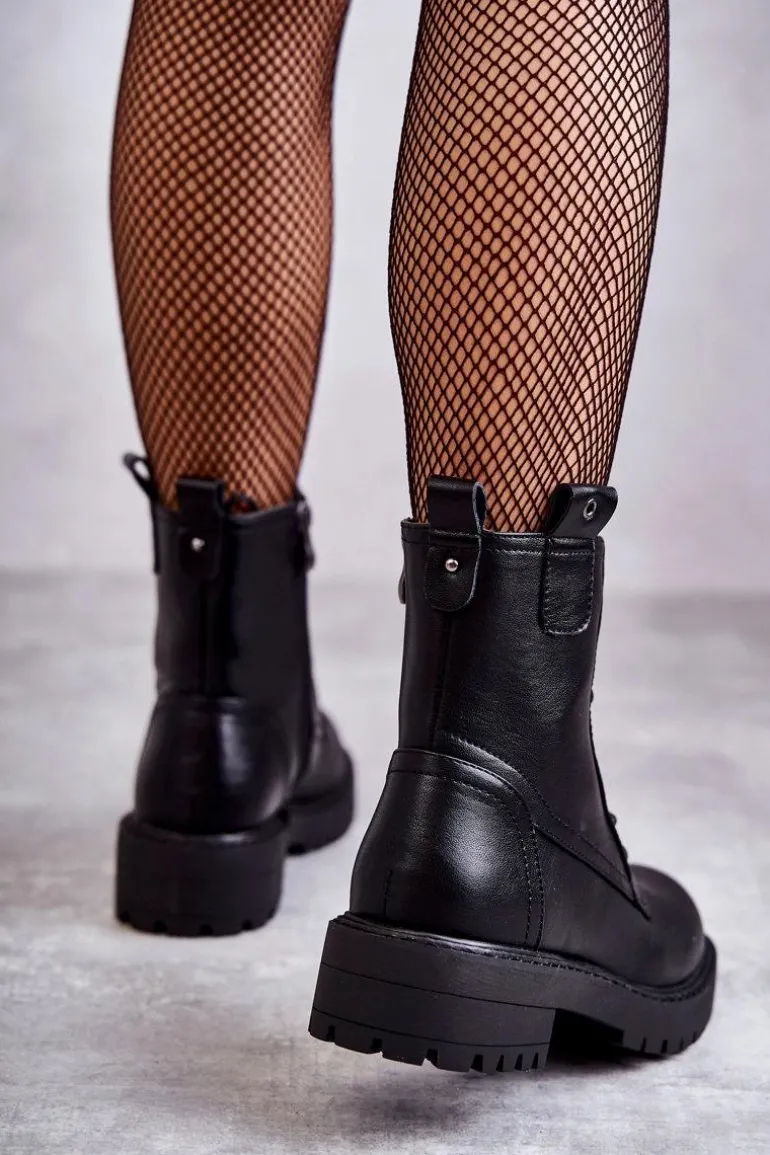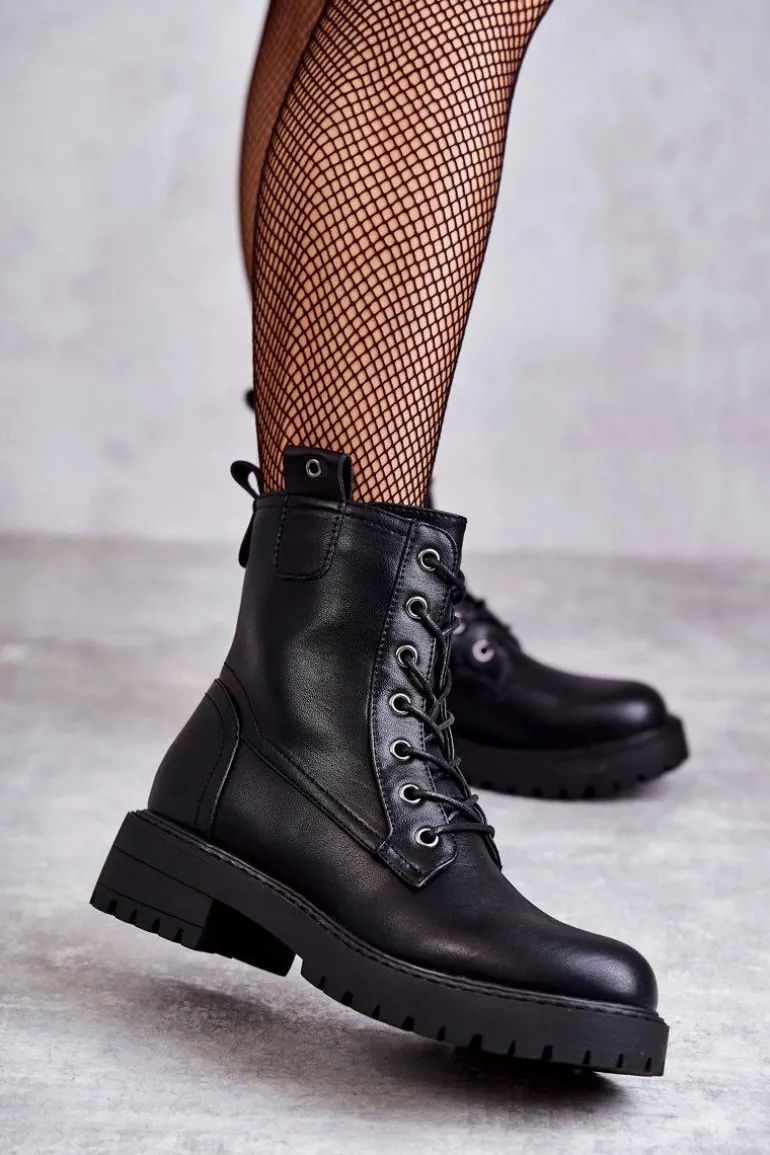Botki damskie o klasycznym fasonie świetnie sprawdzą się na jesienne, chłodne dni. Posiadają wewnątrz ocieplenie w postaci koca obuwniczego. Osadzone na płaskim, stabilnym obcasie ze żłobieniami. Dodatkowo posiadają usztywniany zapiętek. Model z suwakiem na boku cholewki oraz sznurowaniem. Idealny model do pracy czy szkoły. Przy wyborze rozmiaru prosimy sugerować się tabelą rozmiarów.