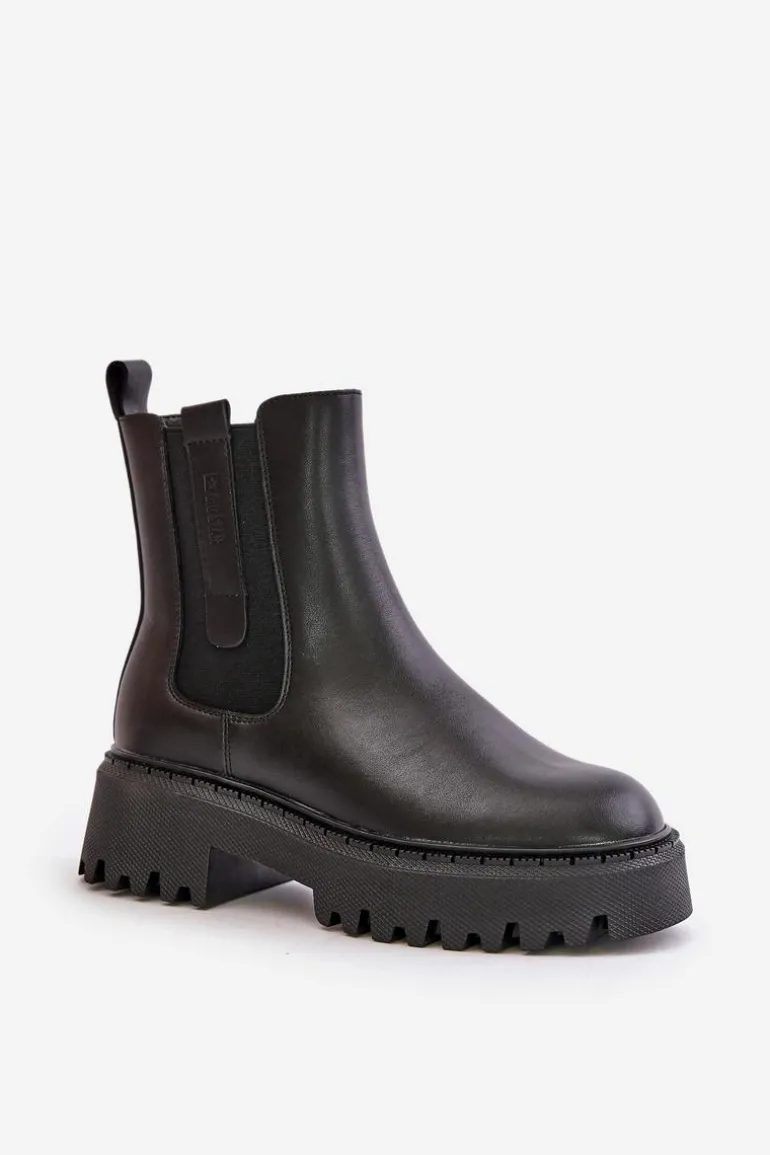 Wsuwane botki od marki Big Star idealnie pasują do wielu stylizacji! Wykonane z naturalnej skóry. Posiadają płaski obcas i platformę z bieżnikiem. Wnętrze wyłożone kocem obuwniczym dla dodatkowego ciepła. Zaokrąglone noski i elastyczne wstawki na cholewce to ich cechy charakterystyczne. Dodatkowo, model ten posiada wzmocniony zapiętek. Podczas wybierania rozmiaru zalecamy kierować się tabelą rozmiarów.