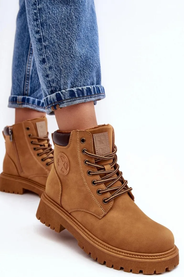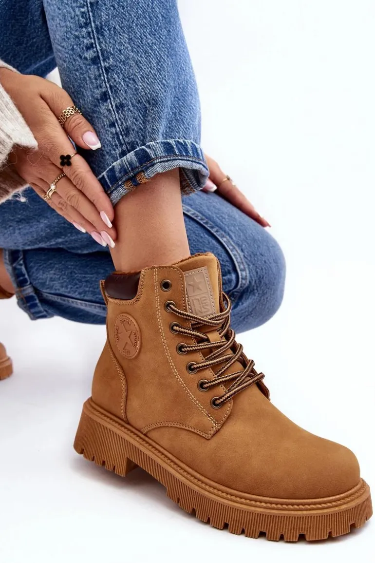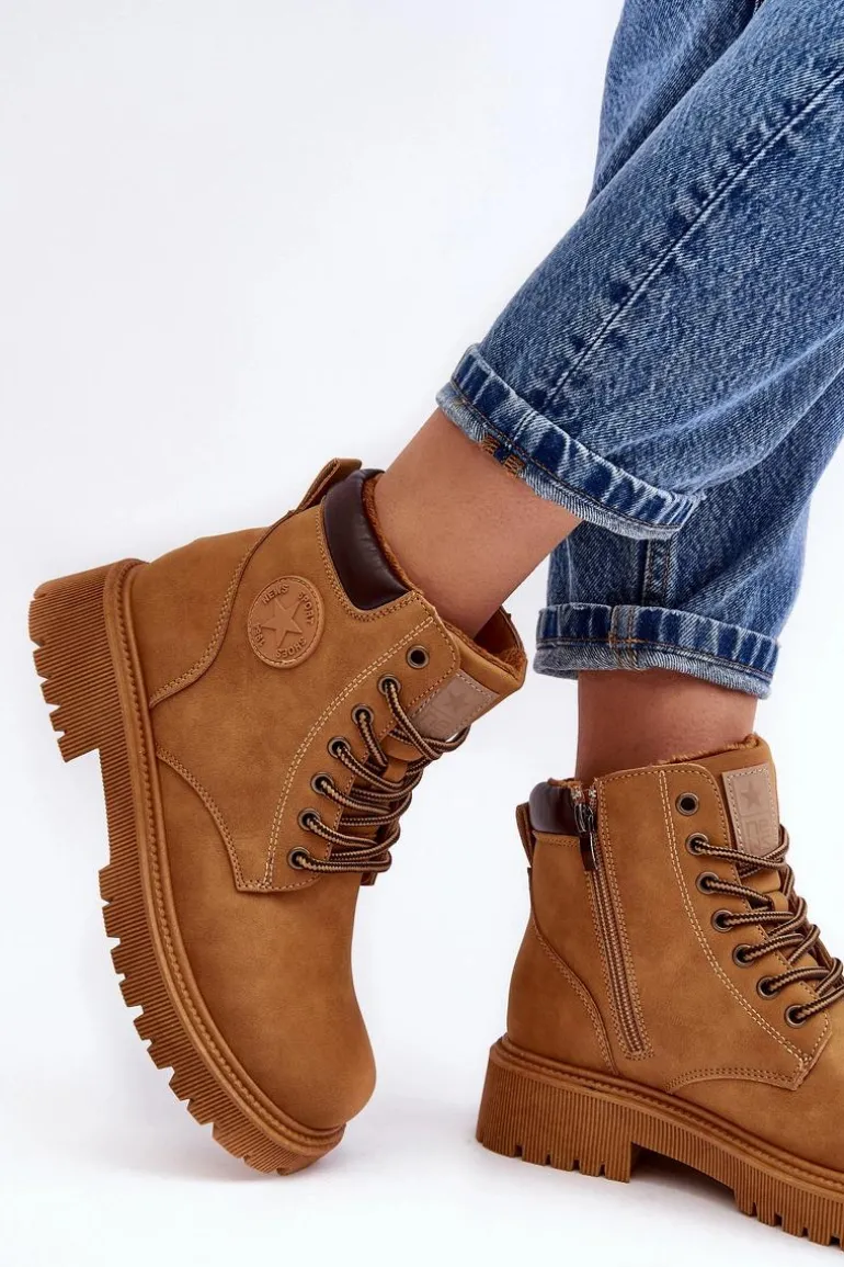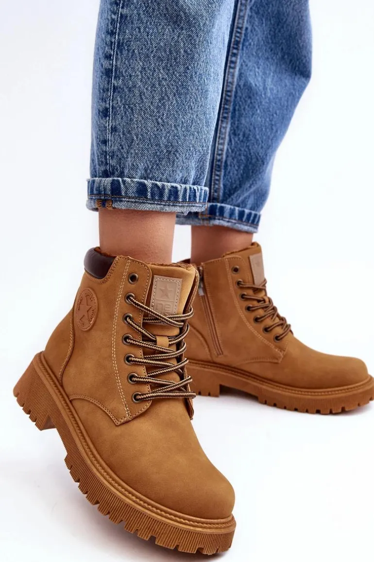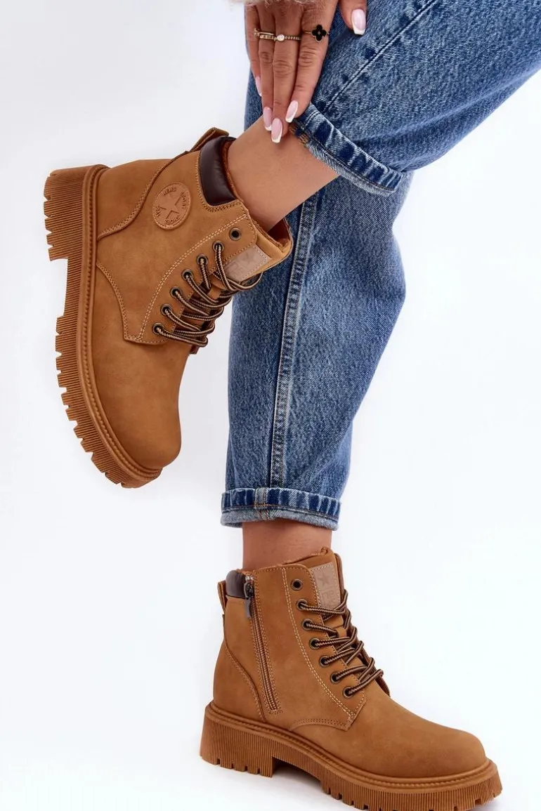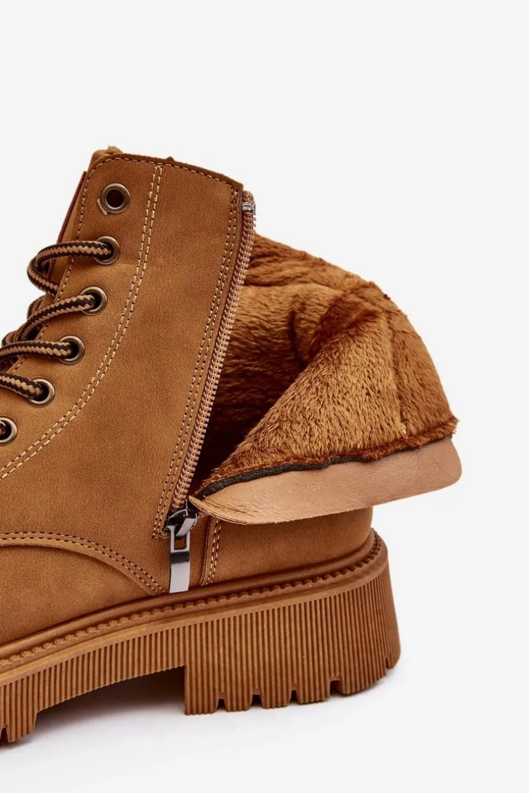 Botki w stylu traperów idealnie sprawdzą się na chłodniejsze dni! Zostały wykonane z eko skóry. Posiadają klasyczne sznurowanie oraz suwak z boku cholewki. Model z dodatkowo usztywnianym zapiętkiem. Ocieplone wewnątrz miłym w dotyku kocem obuwniczym. Trapery osadzono na delikatnej platformie oraz płaskim obcasie. Przy wyborze rozmiaru prosimy sugerować się tabelą rozmiarów.