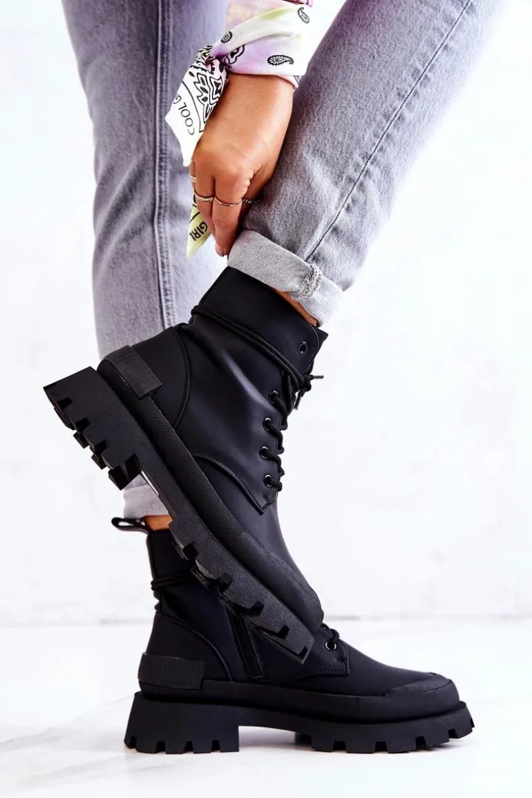 Botki wykonane z wierzchu ze skóry ekologicznej. Posiadają wiązanie oraz suwak. Botki są ocieplane miłym w dotyku kocem obuwniczym. Klasyczny fason idealnie sprawdzi się podczas wielu stylizacji. Traperowa podeszwa zapewni stabilność na każdym kroku. Przy wyborze rozmiaru prosimy sugerować się tabelą rozmiarów.