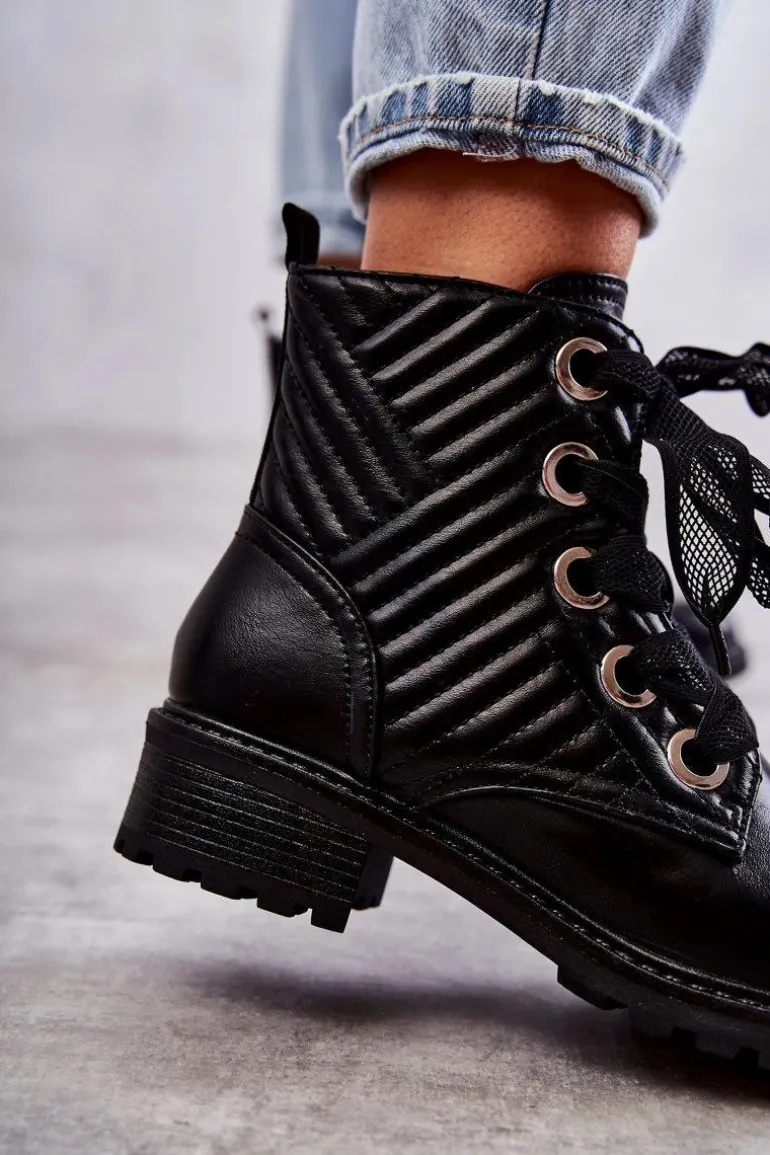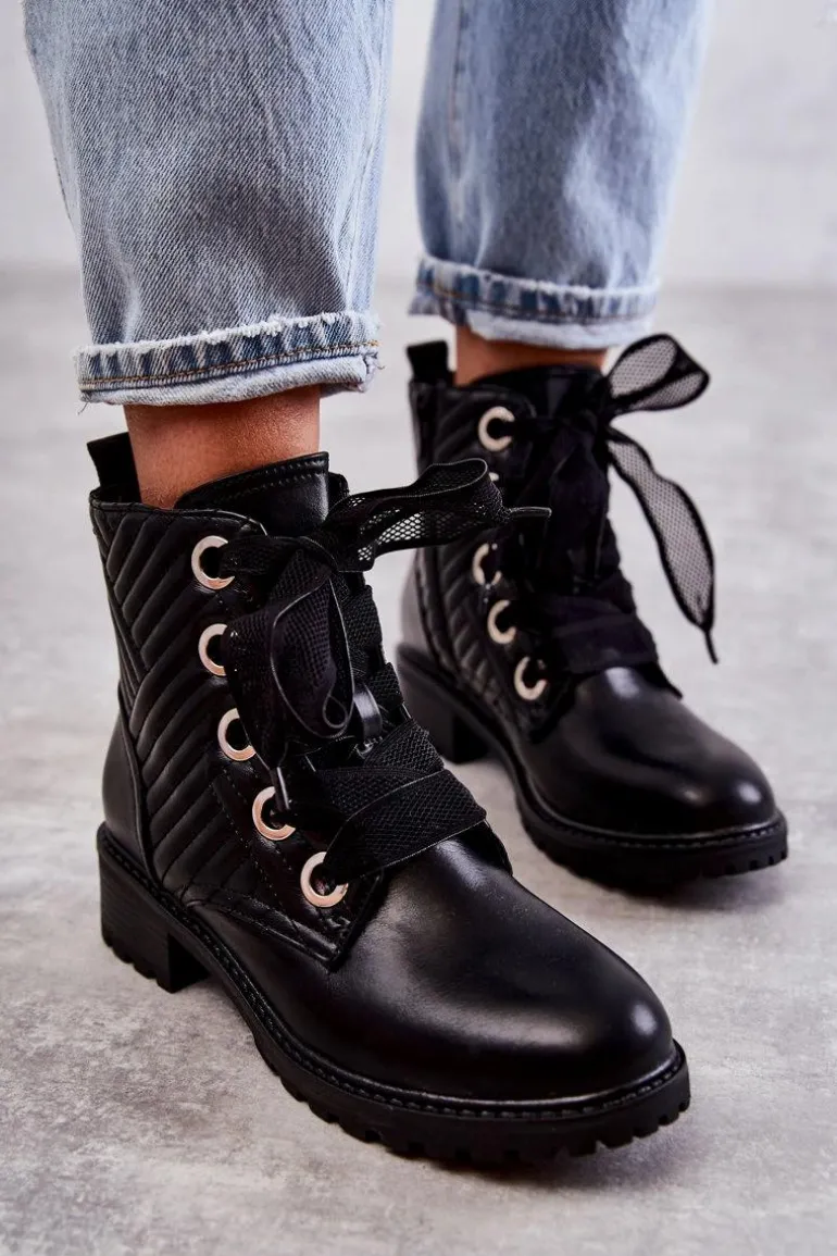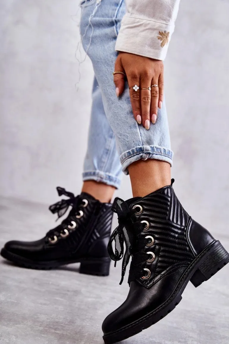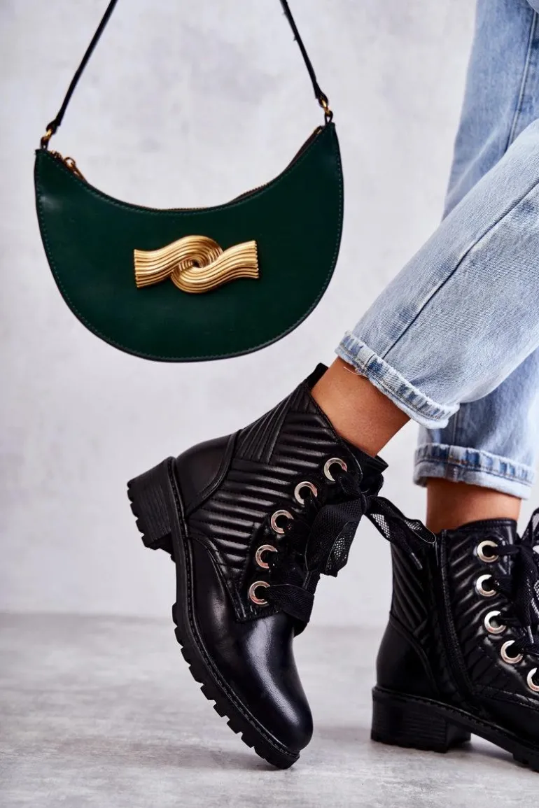 Skórzane Pikowane Botki Z Ociepleniem Czarne Torino