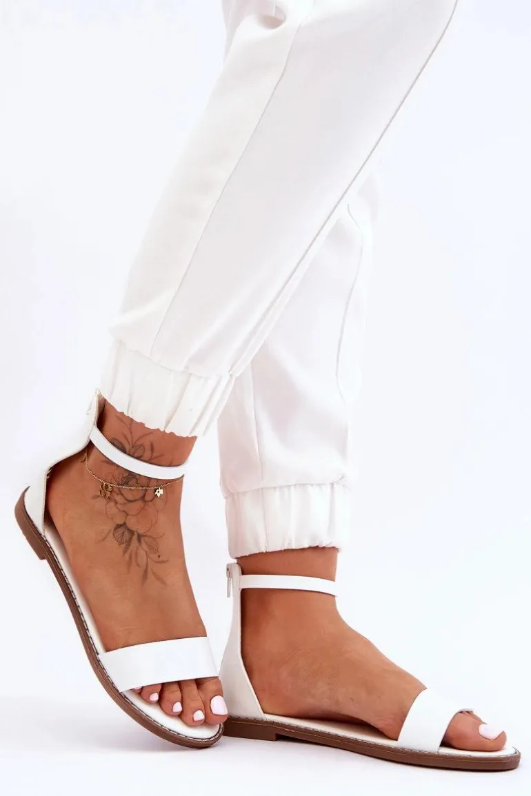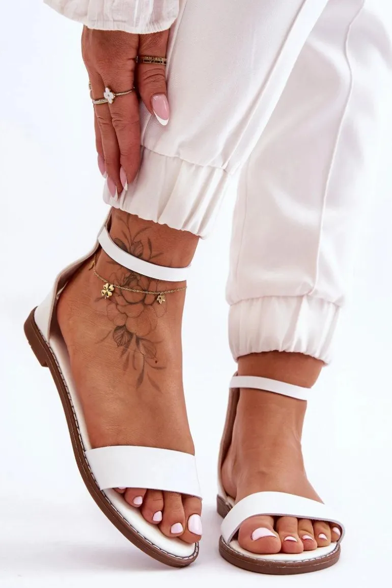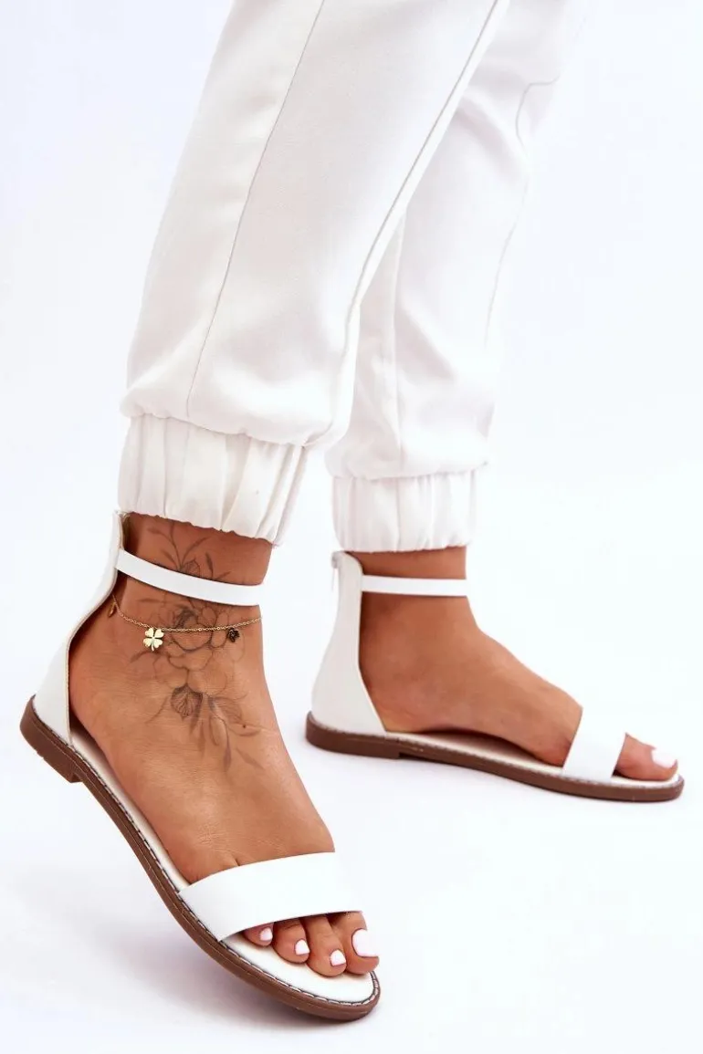 Skórzane Płaskie Sandały Na Zamek Białe Millou