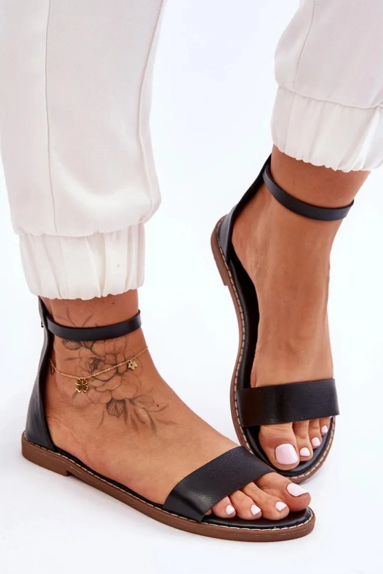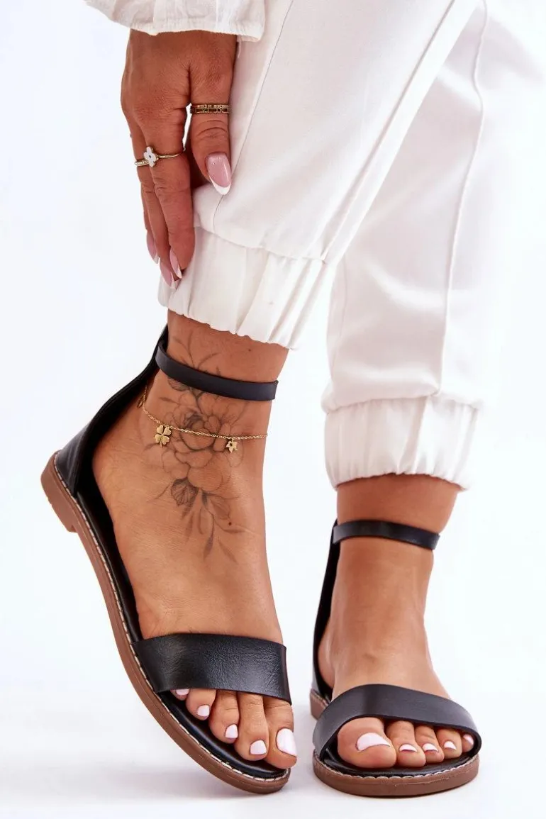 Damskie sandały zostały wykonane z eko skóry. Osadzone na płaskim obcasie i antypoślizgowej podeszwie. Sandałki posiadają z przodu paseczek. Miękka wkładka także została wykonana z eko skóry. Buty te posiadają zapinanie na zamek z tyłu cholewki. Nosek jest odkryty, zaokrąglony. Wokół podeszwy znajduje się przeszycie. Przy wyborze rozmiaru prosimy kierować się tabelą rozmiarów.