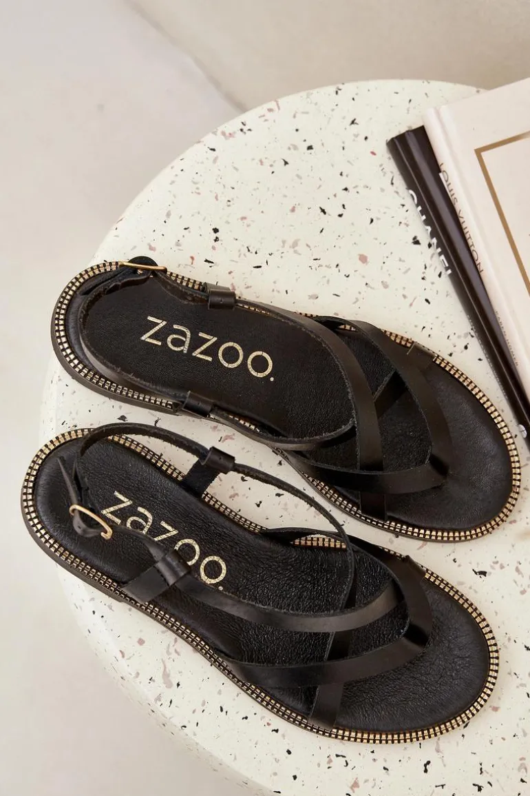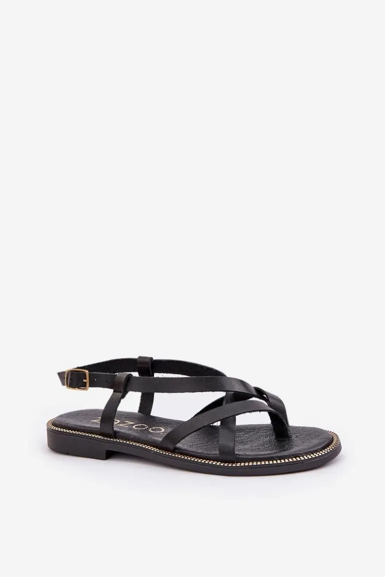 Płaskie sandały wykonane z naturalnej skóry to elegancka propozycja na ciepłe dni. Zapinane na regulowany pasek ze sprzączką, co pozwala na idealne dopasowanie do stopy. Przeplatające się paski nadają im subtelny, ale jednocześnie nowoczesny wygląd. Te sandały łączą wygodę z modnym designem, sprawdzając się doskonale zarówno na co dzień, jak i w bardziej eleganckich stylizacjach. Przy wyborze rozmiaru prosimy kierować się tabelą rozmiarów.