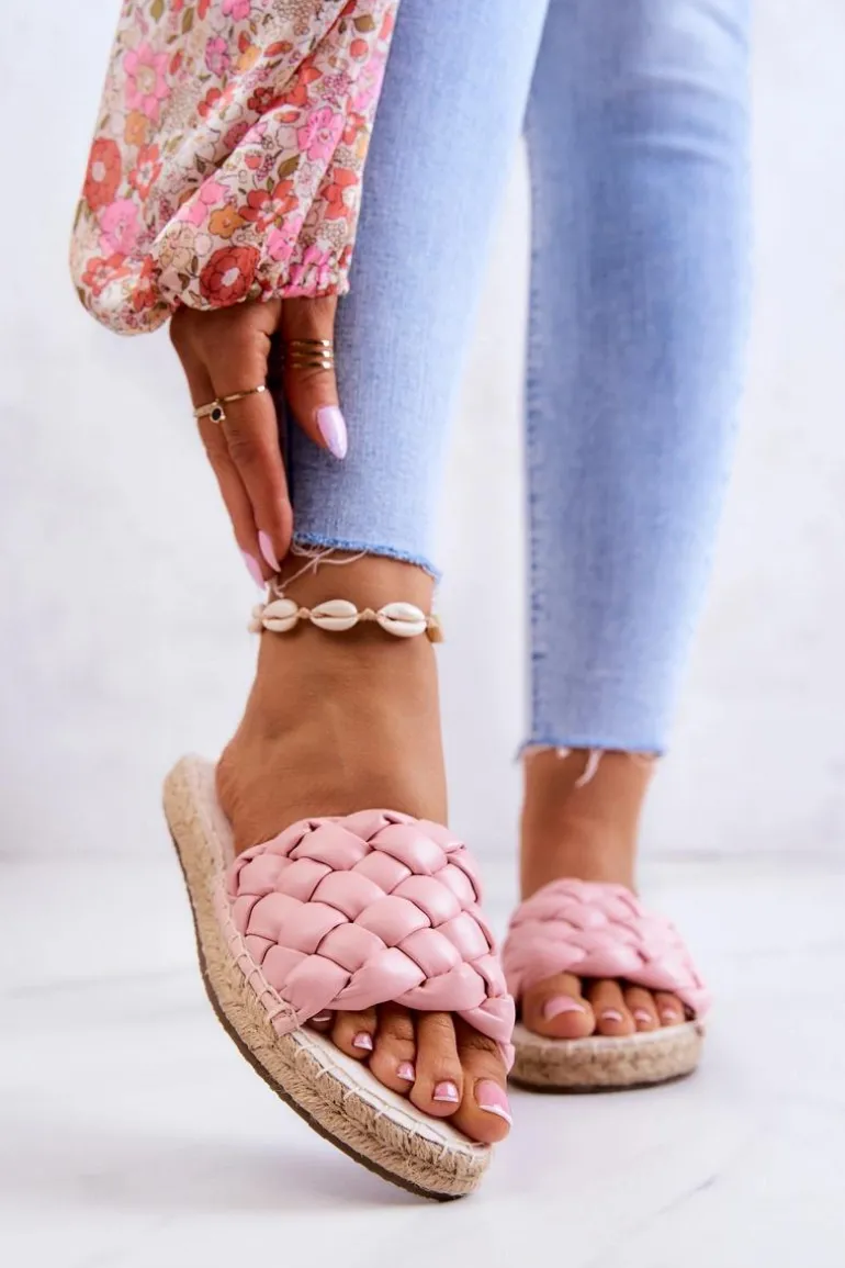 Skórzane Plecione Klapki Big Star JJ274921 Różowe