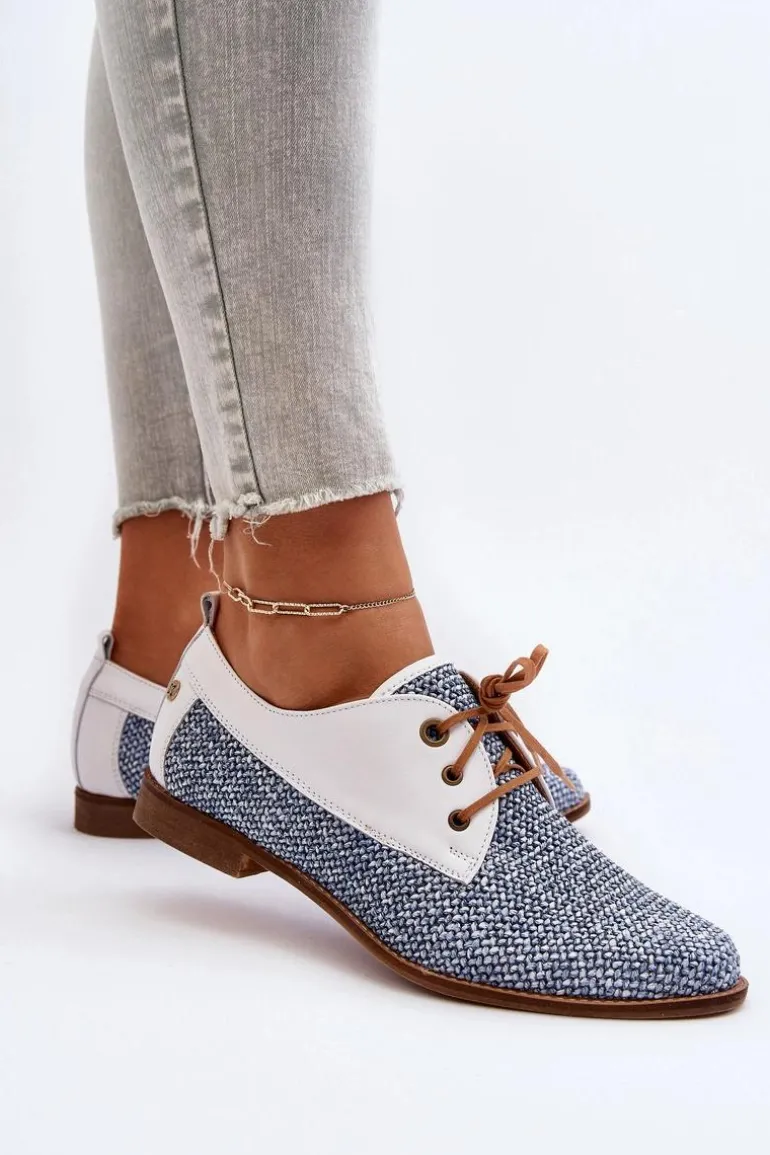 Półbuty damskie wykonane z wysokiej jakości skóry naturalnej i tkaniny prezentują się niezwykle efektownie. Osadzone na płaskim, stabilnym obcasie. Zaokrąglone noski dodają delikatności, a klasyczne sznurowanie gwarantuje idealne dopasowanie do stopy. Te półbuty nie tylko podkreślą Twój indywidualny styl, ale także zapewnią komfort noszenia na każdym kroku. Przy wyborze rozmiaru prosimy sugerować się tabelą rozmiarów.