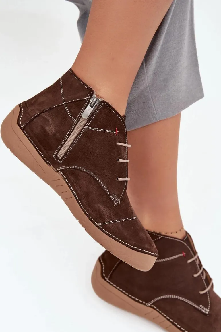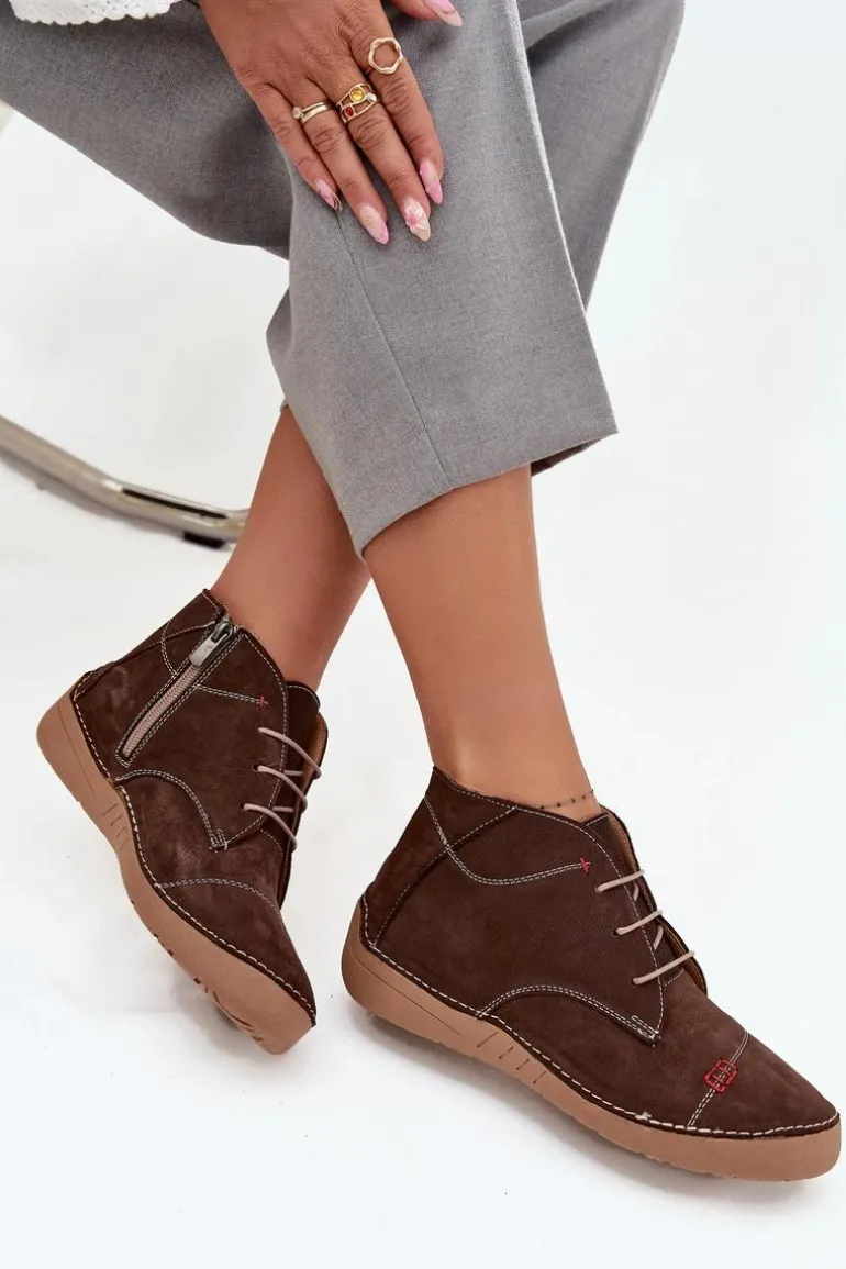 Półbuty damskie marki Artiker. Wysokiej jakości skóra zapewnia trwałość i elegancki wygląd, a staranne wykończenie sprawia, że buty prezentują się stylowo i są wygodne w codziennym użytkowaniu. Model posiada zarówno w klasyczne sznurowanie, które umożliwia idealne dopasowanie do stopy, jak i w praktyczny zamek, dzięki czemu zakładanie obuwia staje się szybkie i komfortowe. Subtelne przeszycia stanowią elegancki akcent dekoracyjny, podkreślający unikalny charakter półbutów. To uniwersalne obuwie, które świetnie sprawdzi się zarówno w casualowych stylizacjach, jak i bardziej formalnych zestawach, zapewniając wygodę, styl i funkcjonalność na co dzień. Przy wyborze rozmiaru prosimy sugerować się tabelą rozmiarów.