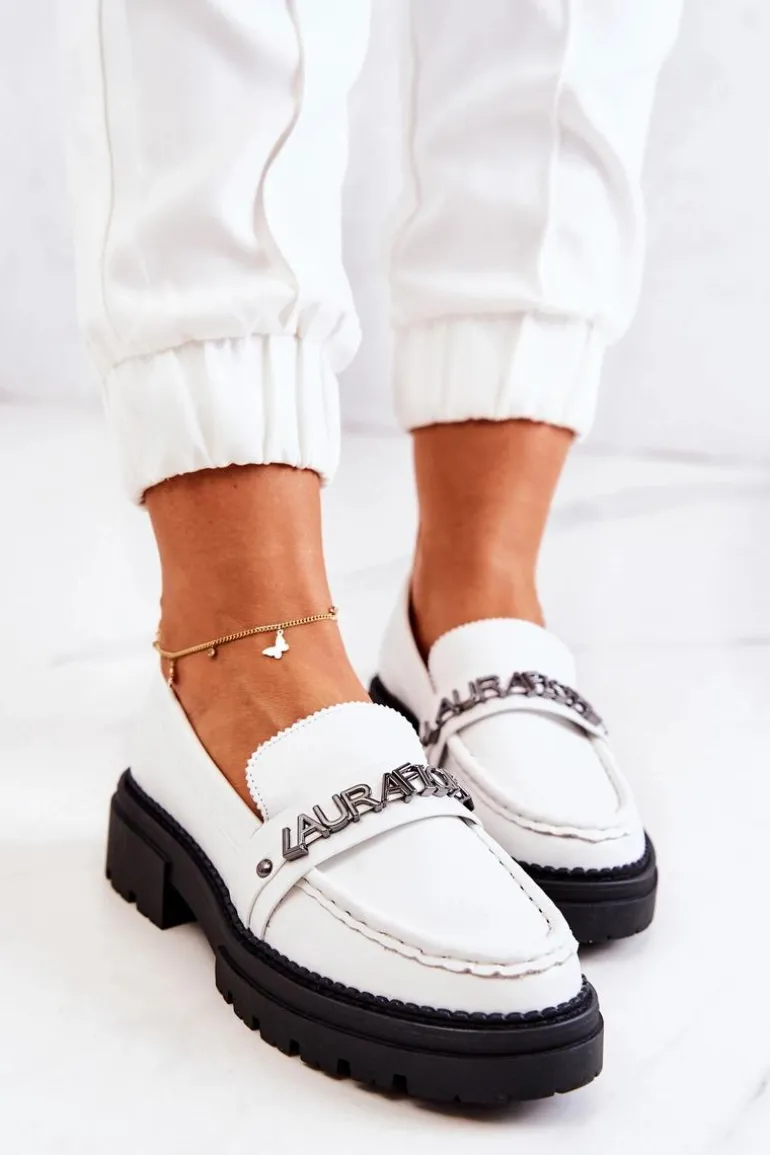 Klasyczne półbuty w stylu przepięknych loaferów marki Laura Fiore! Buty zostały wykonane z wysokiej jakości eko skóry. Charakterystyczny paseczek z przesuwanymi literkami Laura Fiore wygląda naprawdę cudnie. Półbuty posiadają wysoką podeszwę oraz obcas, który uniesie naszą sylwetkę. Miękka, skórzana wkładka zadba o wygodę podczas noszenia. Przy wyborze rozmiaru prosimy sugerować się tabelą rozmiarów.