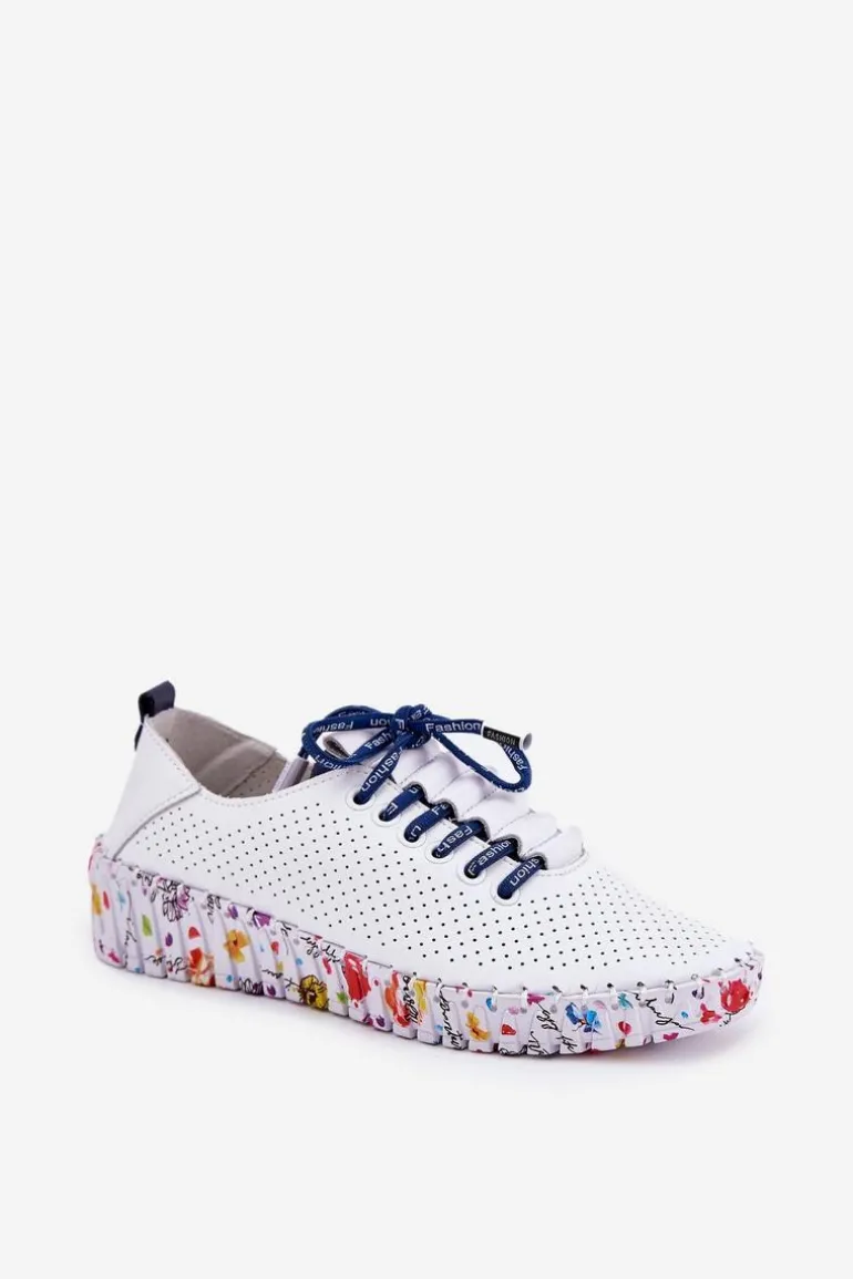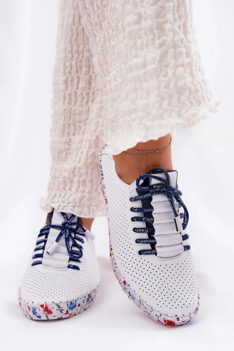 Półbuty damskie wykonane z naturalnej skóry. Osadzone na wzorzystej platformie z delikatnym koturnem, łączą wygodę z modnym designem. Zaokrąglone noski zapewniają komfort przez cały dzień, a sznurowany model umożliwia idealne dopasowanie do stopy. Miękka wkładka dodatkowo zwiększa wygodę noszenia. Te półbuty będą doskonałym wyborem do codziennych stylizacji, wprowadzając do nich subtelną elegancję i lekkość. Przy wyborze rozmiaru prosimy sugerować się tabelą rozmiarów.