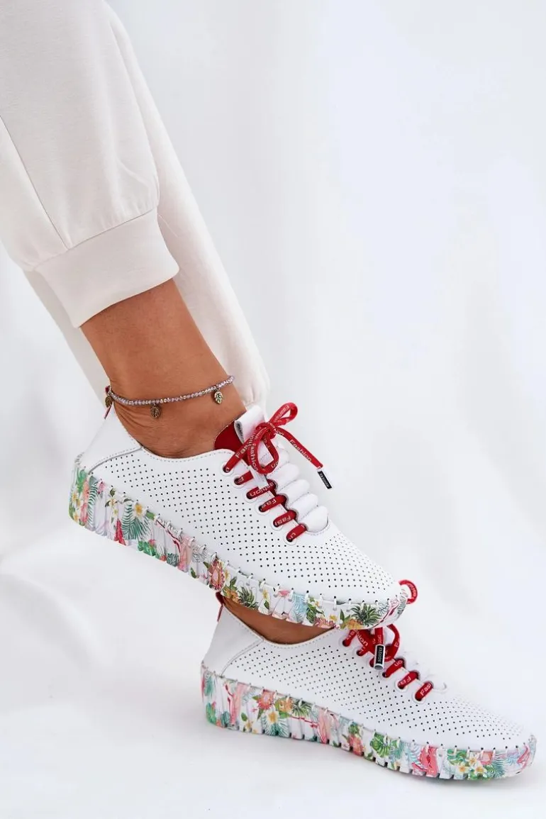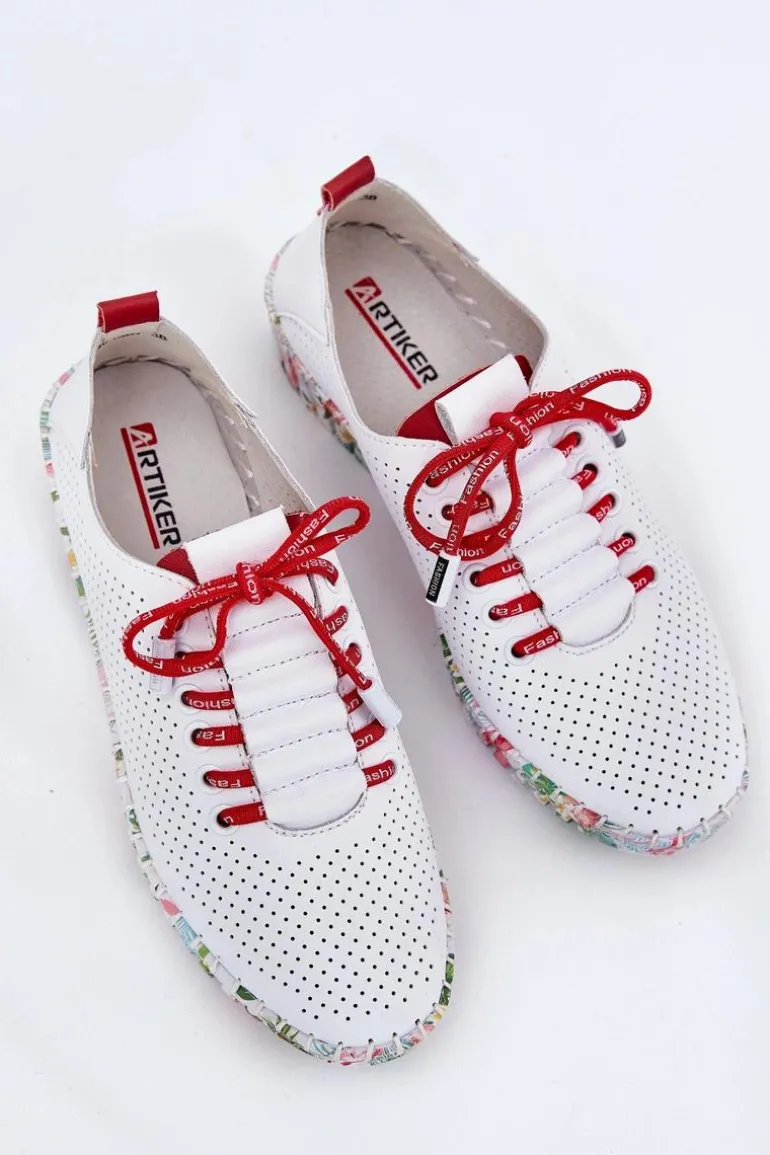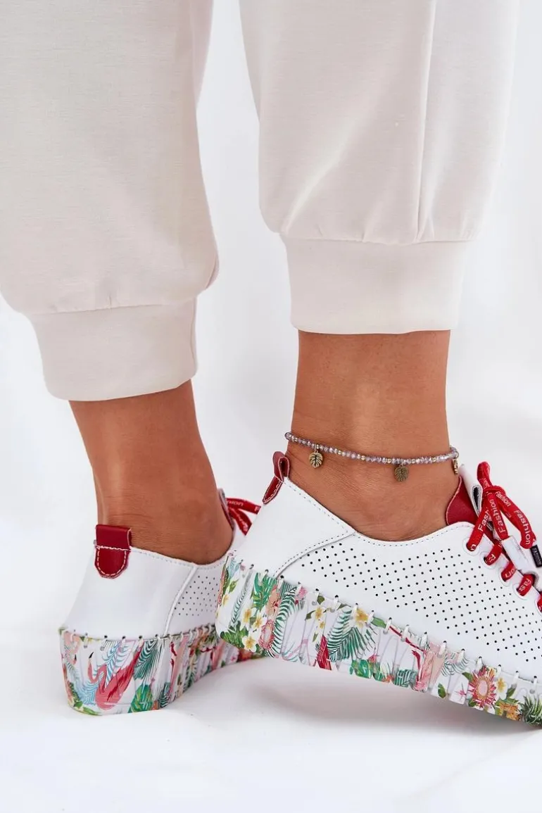 Półbuty damskie wykonane z naturalnej skóry. Osadzone na wzorzystej platformie z delikatnym koturnem, łączą wygodę z modnym designem. Zaokrąglone noski zapewniają komfort przez cały dzień, a sznurowany model umożliwia idealne dopasowanie do stopy. Miękka wkładka dodatkowo zwiększa wygodę noszenia. Te półbuty będą doskonałym wyborem do codziennych stylizacji, wprowadzając do nich subtelną elegancję i lekkość. Przy wyborze rozmiaru prosimy sugerować się tabelą rozmiarów.