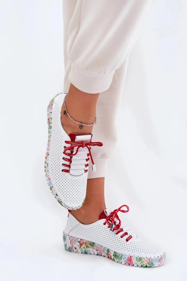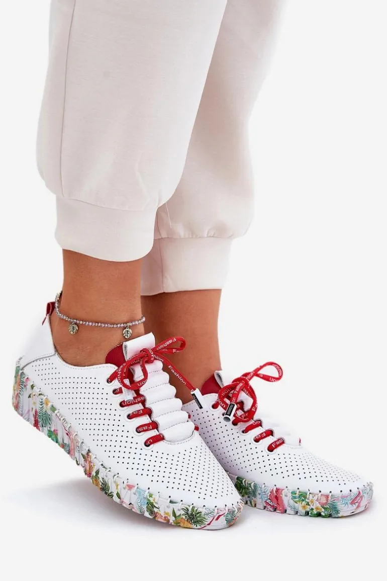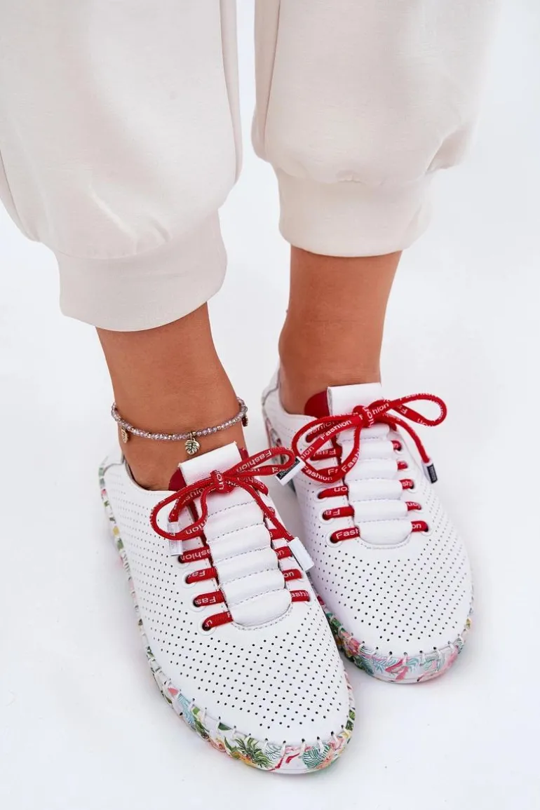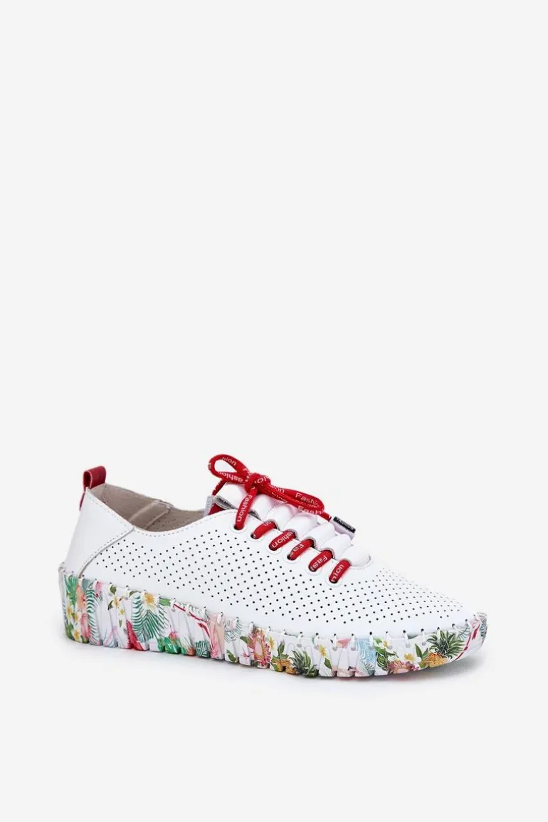 Półbuty damskie wykonane z naturalnej skóry. Osadzone na wzorzystej platformie z delikatnym koturnem, łączą wygodę z modnym designem. Zaokrąglone noski zapewniają komfort przez cały dzień, a sznurowany model umożliwia idealne dopasowanie do stopy. Miękka wkładka dodatkowo zwiększa wygodę noszenia. Te półbuty będą doskonałym wyborem do codziennych stylizacji, wprowadzając do nich subtelną elegancję i lekkość. Przy wyborze rozmiaru prosimy sugerować się tabelą rozmiarów.