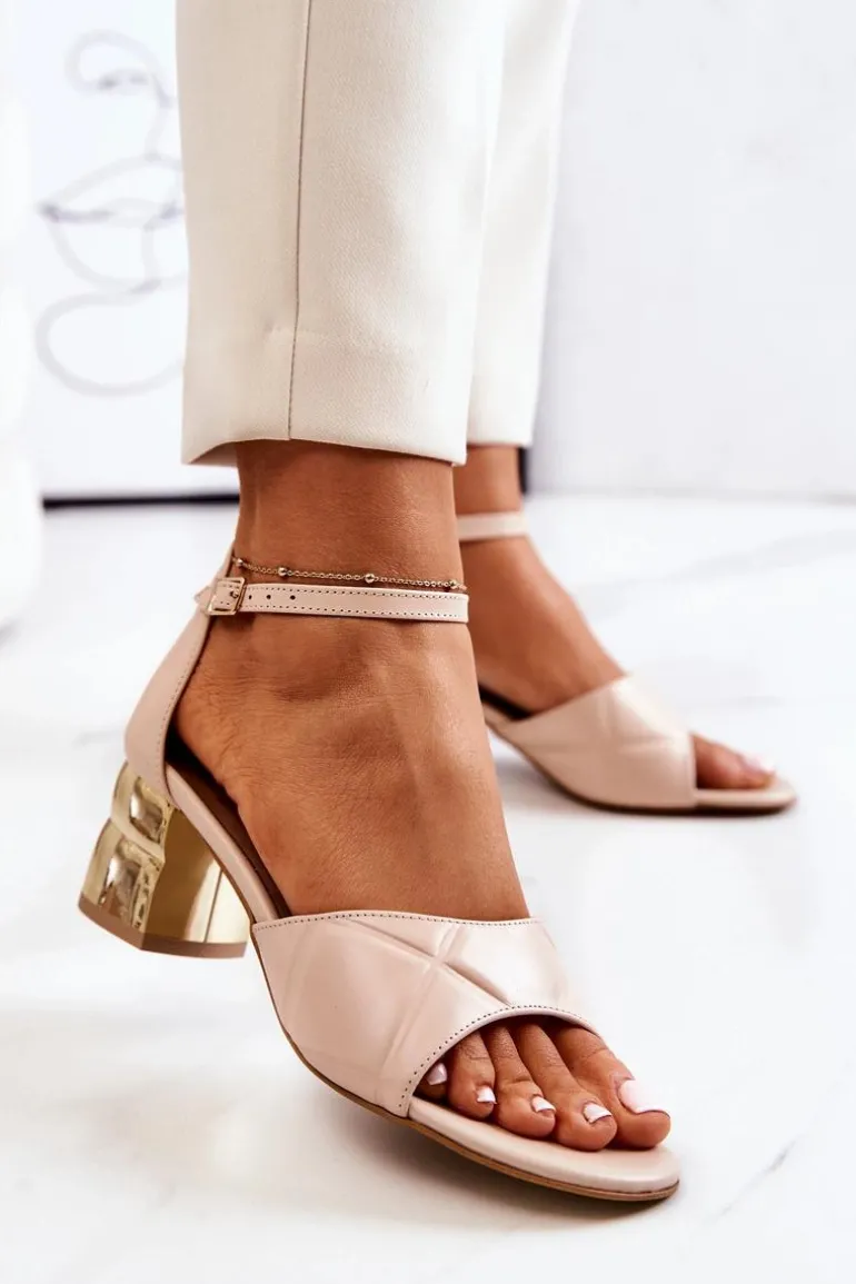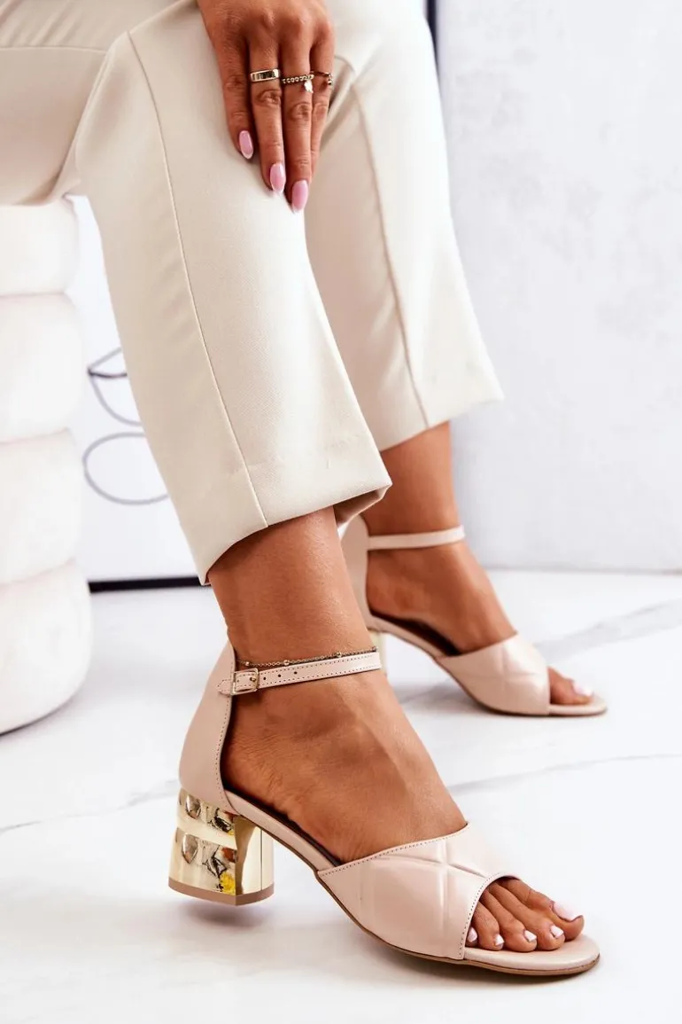 Skórzane Sandałki Na Słupku Lewski 3027 Beżowe
