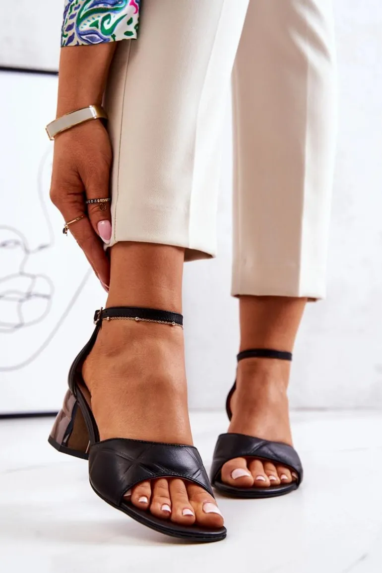Skórzane Sandałki Na Słupku Lewski 3027 Czarne