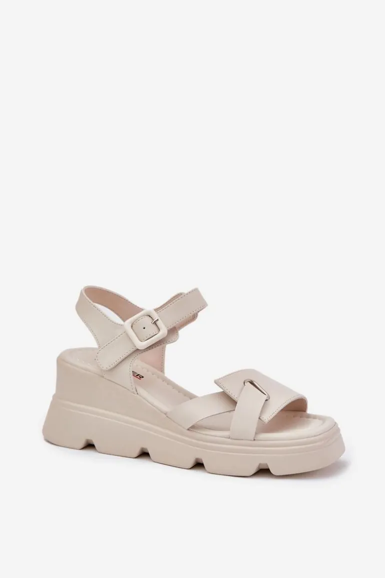 Damskie sandały z naturalnej skóry to elegancka propozycja na ciepłe dni. Osadzone na koturnie, zapewniają komfort i stabilność przez cały dzień. Zapinane na klamrę z regulowanym paskiem, pozwalają na idealne dopasowanie do stopy. Miękka wkładka gwarantuje wygodę, a klasyczny fason sprawia, że te sandały będą doskonałym uzupełnieniem wielu letnich stylizacji. Idealne zarówno do codziennych, jak i bardziej eleganckich looków. Przy wyborze rozmiaru prosimy sugerować się tabelą rozmiarów.