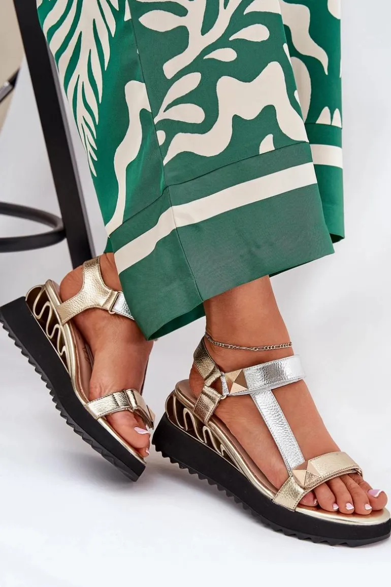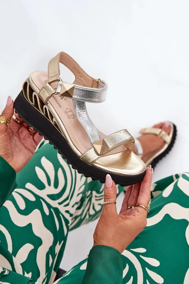 Damskie sandały na koturnie stanowią doskonały wybór na gorące letnie dni. Wykonane z naturalnej skóry. Dzięki praktycznemu zapięciu na rzep, ich zakładanie jest szybkie i proste. Wkładka wykonana z naturalnej skóry gwarantuje komfort noszenia przez cały dzień. Ten model łączy stylowy wygląd z wygodą i swobodą ruchu w każdej sytuacji. Przy wyborze rozmiaru prosimy sugerować się tabelą rozmiarów.