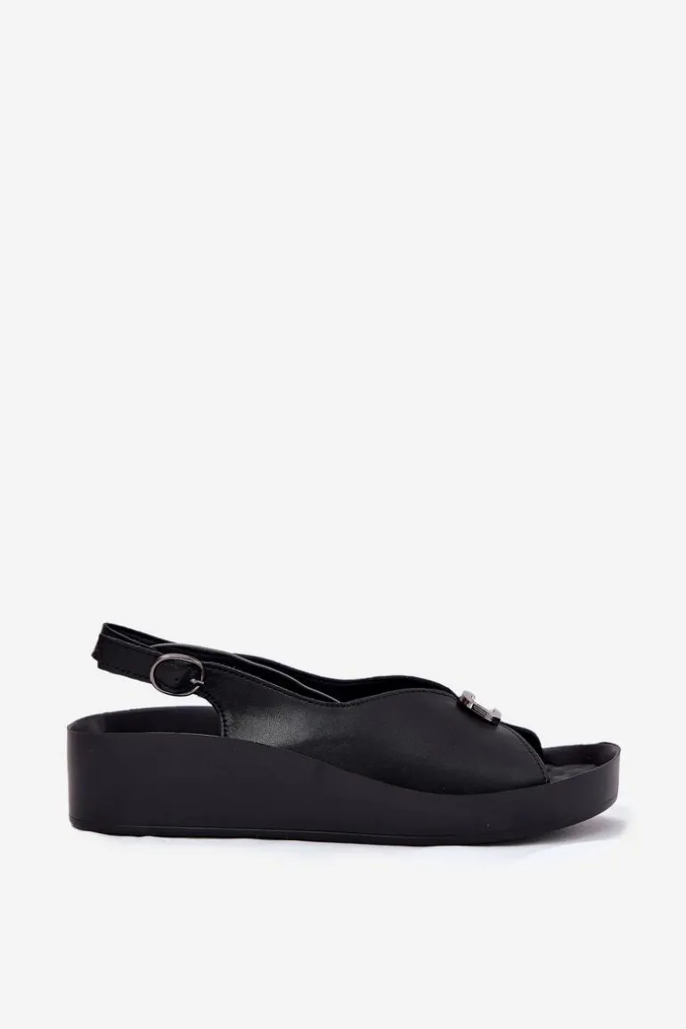 Eleganckie sandały damskie marki S.Barski. Osadzone na platformie i koturnie. Z przodu znajduje się subtelna ozdoba, która dodaje elegancji. Zapinane na regulowany pasek ze sprzączką, zapewniają doskonałe dopasowanie i komfort noszenia przez cały dzień. Stylowe i wygodne obuwie na każdą okazję. Przy wyborze rozmiaru prosimy kierować się tabelą rozmiarów.