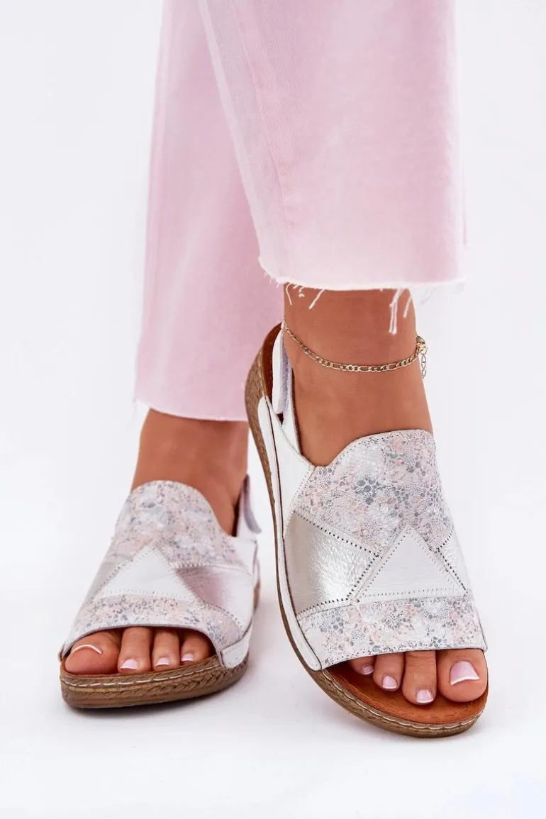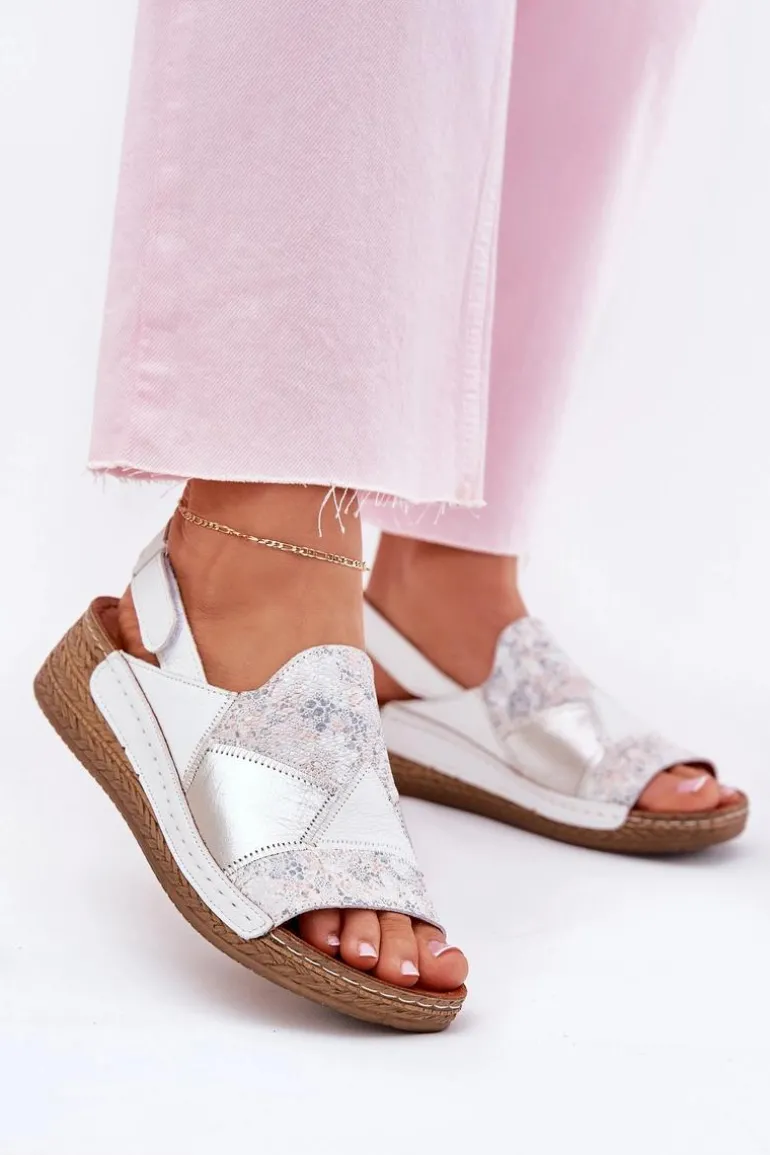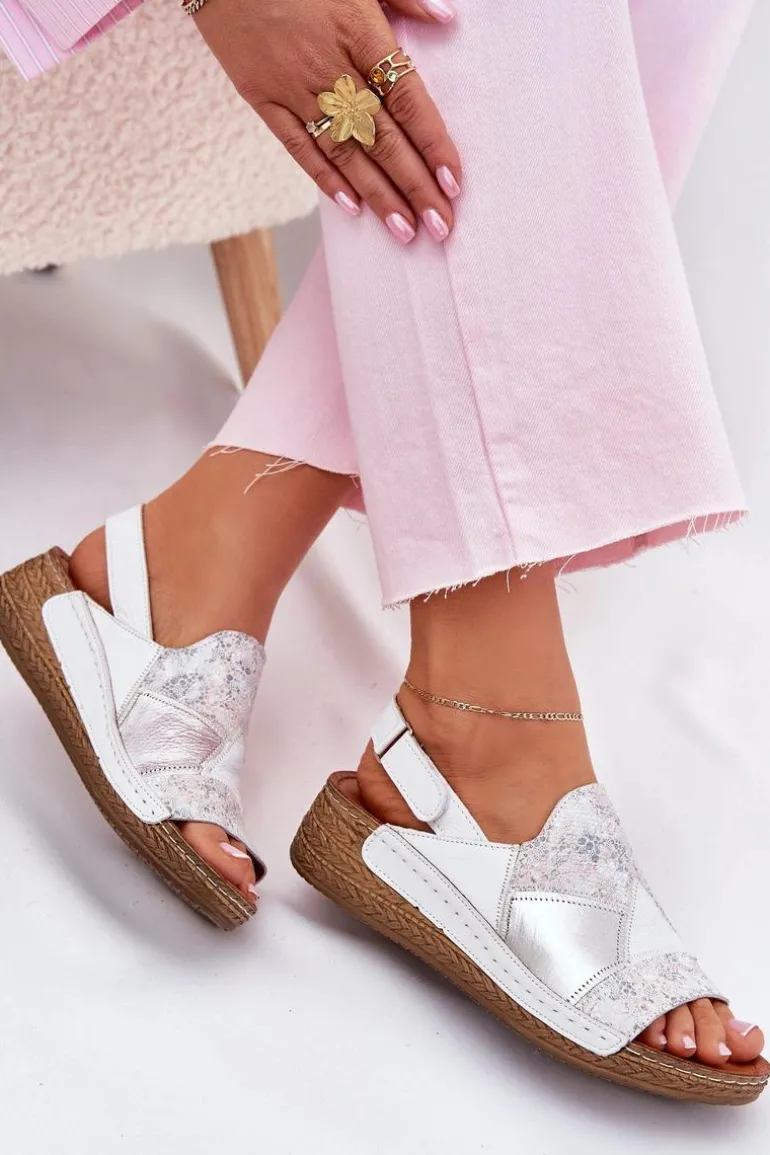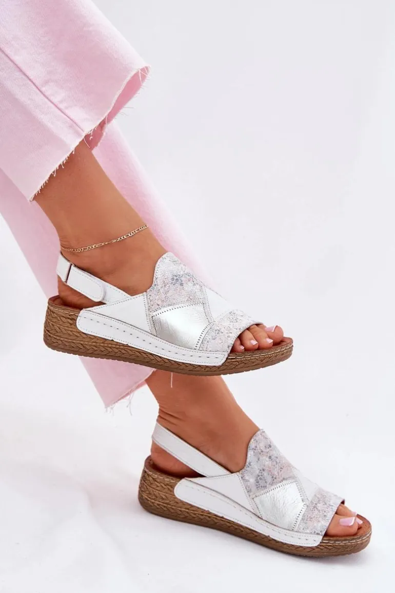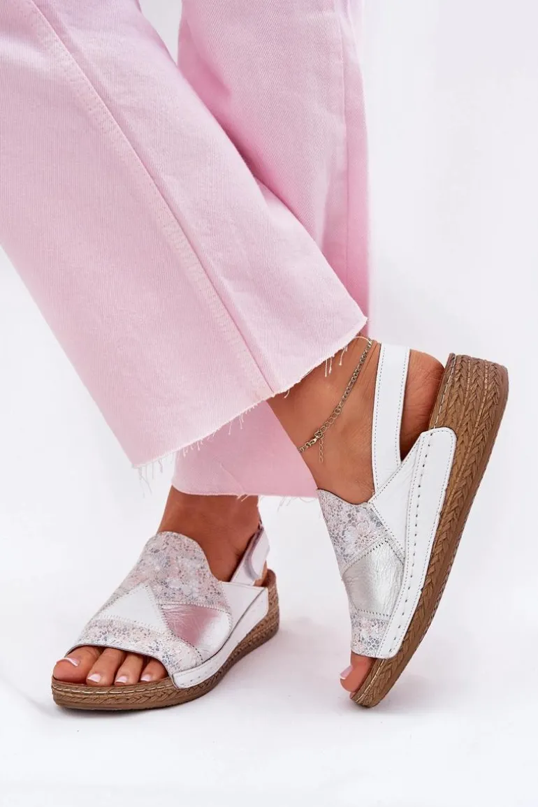 Sandały damskie z naturalnej skóry to elegancka i wygodna opcja na letnie dni. Osadzone na koturnie z imitacją plecionki, te sandały oferują subtelną wysokość, która dodaje lekkości sylwetce, jednocześnie zapewniając stabilność i komfort. Model zapinany na rzep pozwala na łatwe dopasowanie do stopy, co sprawia, że obuwie jest praktyczne i wygodne. Doskonałe do letnich sukienek, spódnic, a także spodni. Przy wyborze rozmiaru prosimy sugerować się tabelą rozmiarów.
