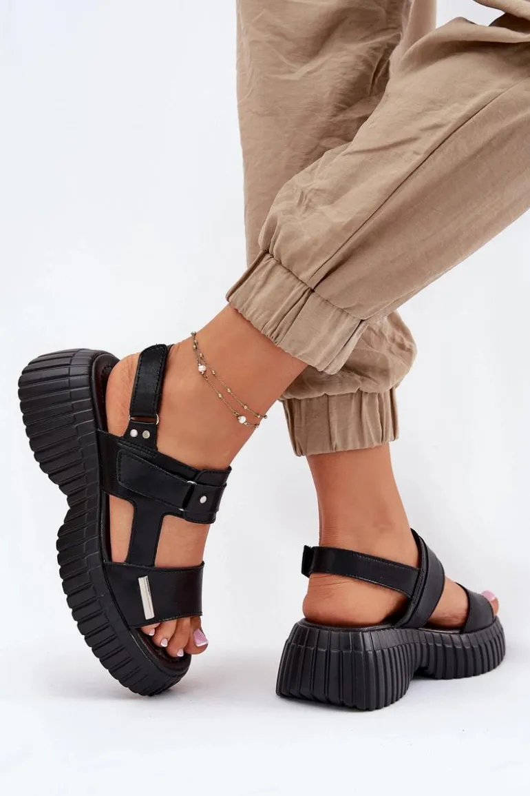 Damskie sandały wykonane z naturalnej skóry to świetna opcja na ciepłe dni, łącząca wygodę z modnym wyglądem. Osadzone na platformie, zapewniają komfort i lekkość przez cały dzień. Model zapinany na podwójny rzep umożliwia łatwe dopasowanie do stopy, zapewniając stabilność i wygodę. Stylowy fason idealnie komponuje się z casualowymi stylizacjami. Te sandały to must-have w letniej garderobie! Przy wyborze rozmiaru prosimy sugerować się tabelą rozmiarów.