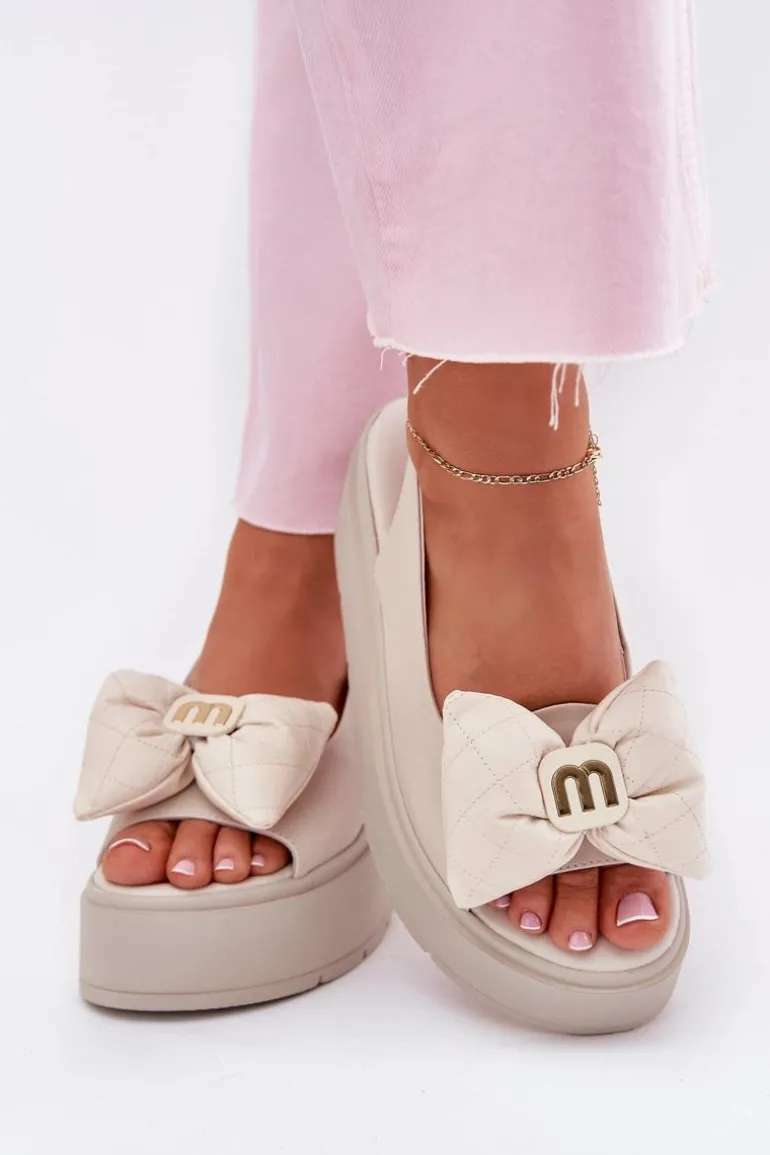Skórzane sandały damskie od marki Chebello, osadzone na masywnej platformie, to elegancka i stylowa propozycja na ciepłe dni. Z przodu ozdobna kokardka, która dodaje im subtelnej elegancji i kobiecego uroku. Masywna platforma zapewnia komfort przez cały dzień, sprawiając, że sandały te są idealnym wyborem na codzienne wyjścia i specjalne okazje. łączą modny wygląd z funkcjonalnością. Przy wyborze rozmiaru prosimy kierować się tabelą rozmiarów.