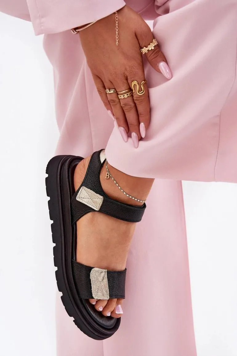 Damskie sandały wykonane z wysokiej jakości skóry naturalnej to połączenie elegancji i wygody. Osadzone na platformie, zapewniają stabilność i komfort przez cały dzień. Zapinane na podwójny rzep, pozwalają na łatwe dopasowanie do stopy, gwarantując idealne dopasowanie i wygodę. Te stylowe i eleganckie sandały będą doskonałym uzupełnieniem letnich stylizacji, łącząc funkcjonalność z modnym wyglądem. Przy wyborze rozmiaru prosimy kierować się tabelą rozmiarów.