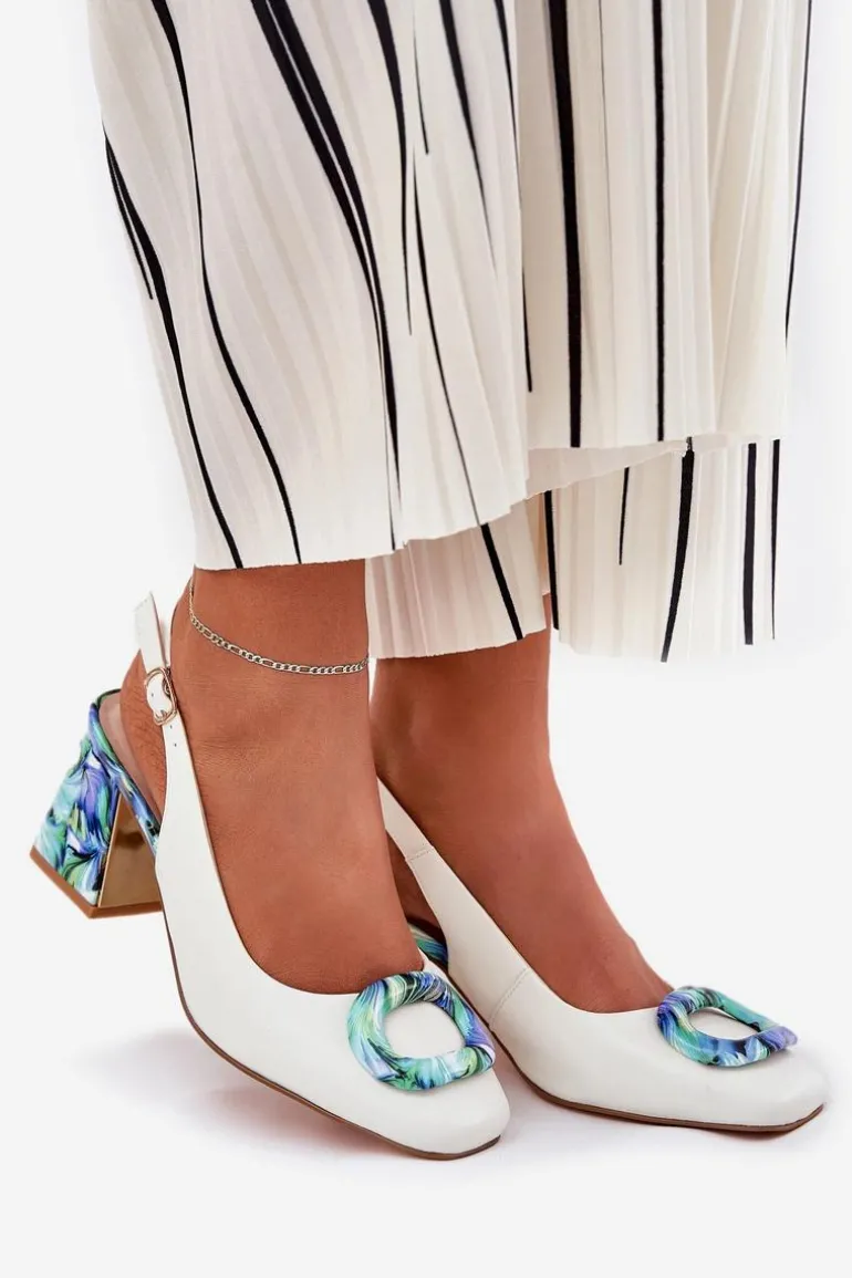 Skórzane Sandały Damskie Na Słupku D&A CR51-002 Białe