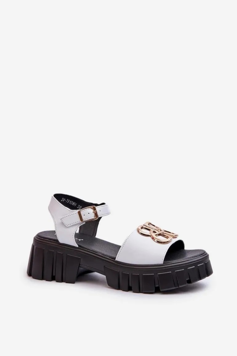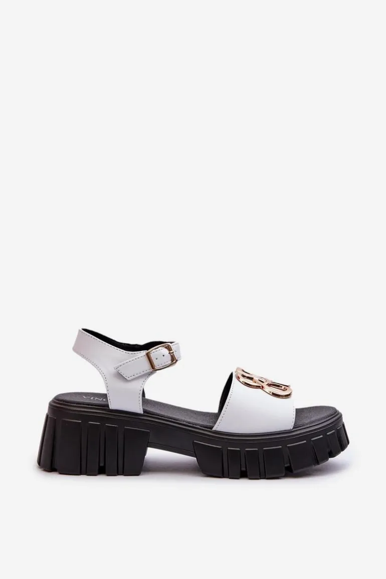 Sandały damskie marki Vinceza. Wykonane ze skóry naturalnej, zapewniają trwałość i komfort noszenia. Z przodu złota ozdoba, która doda blasku każdej stylizacji. Zapinane na regulowany pasek ze sprzączką, gwarantują idealne dopasowanie do stopy. Przy wyborze rozmiaru prosimy sugerować się tabelą rozmiarów.