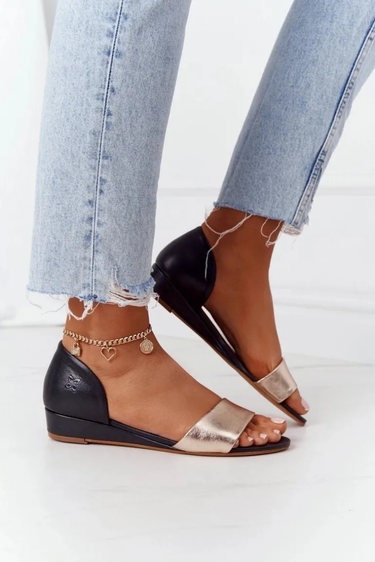 Skórzane Sandały Maciejka 1971-46 Czarno-Złote