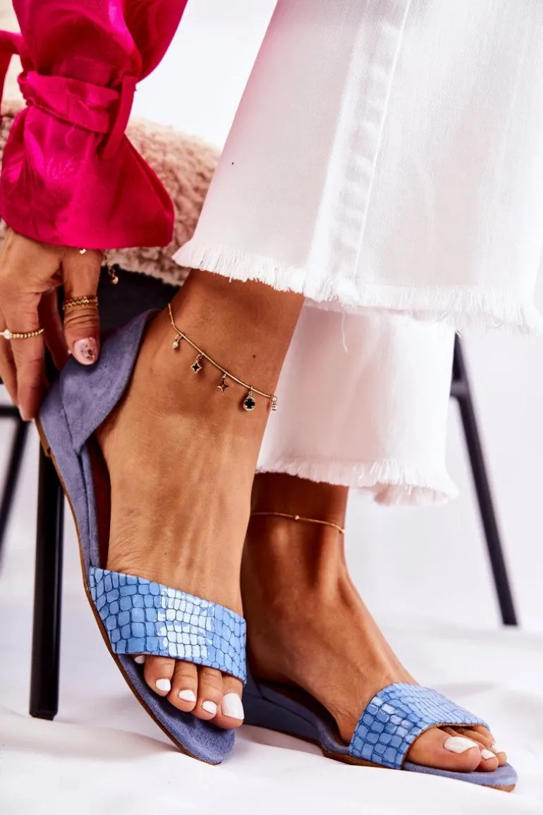 Skórzane Sandały Maciejka 1971-61 Niebieskie