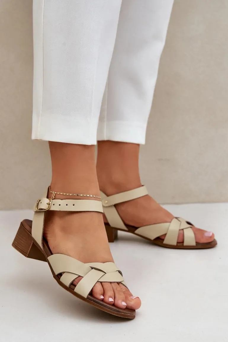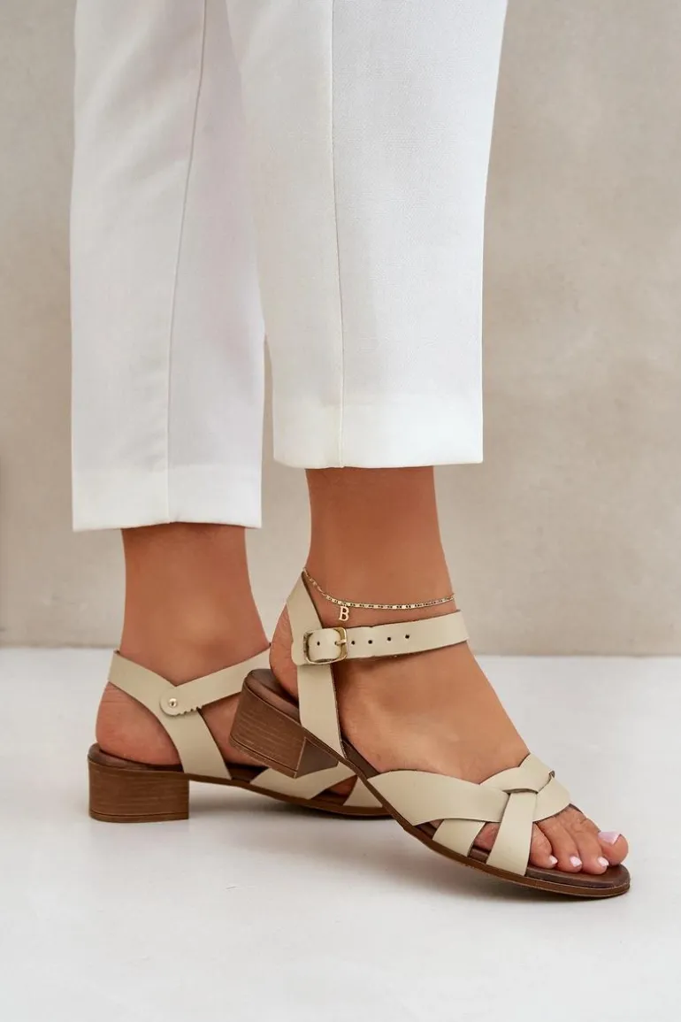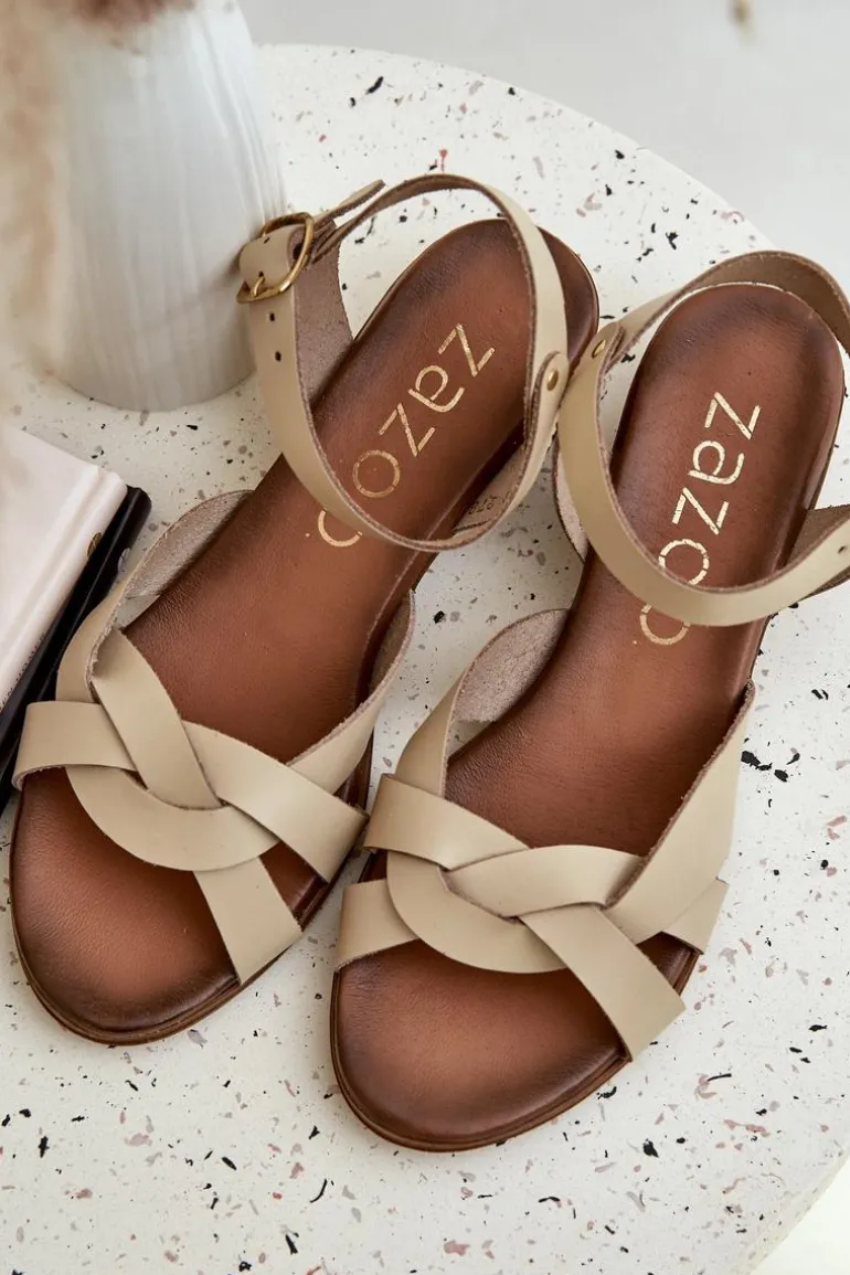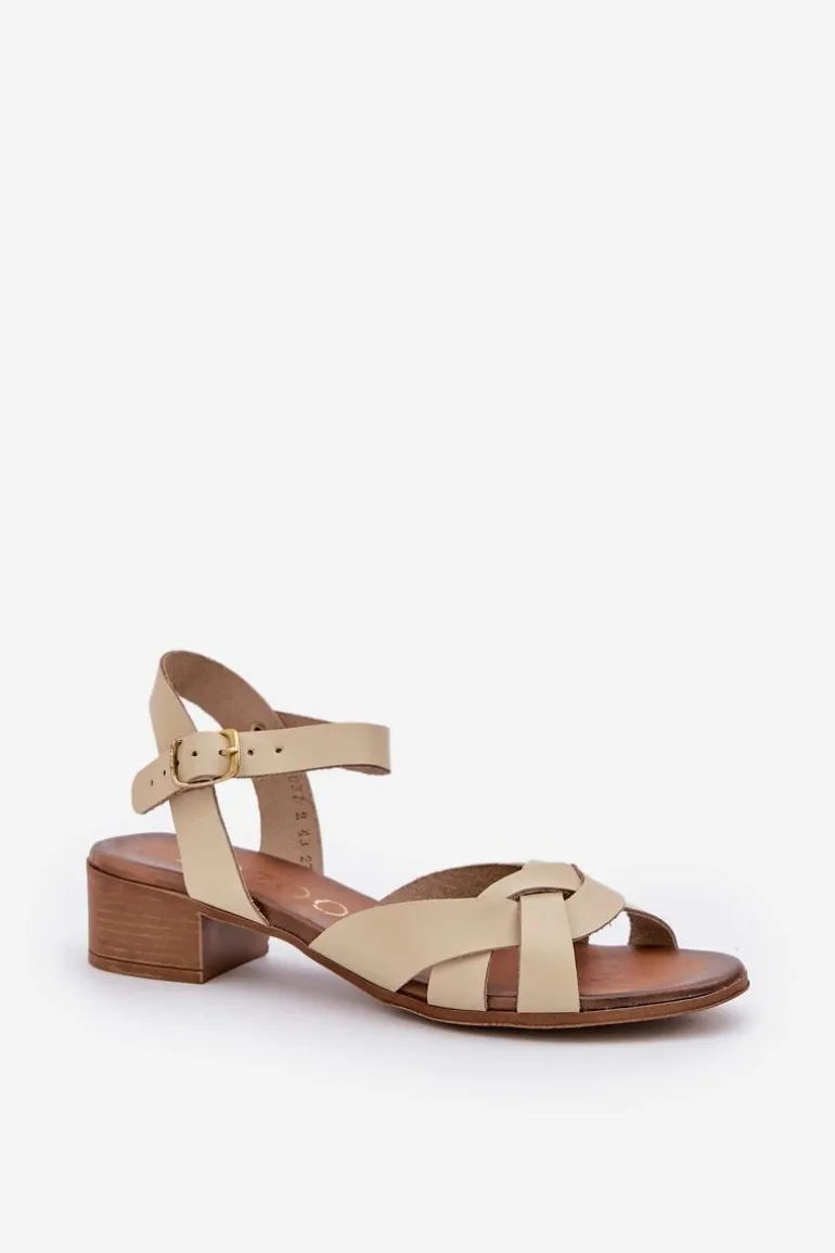 Sandały wykonane z naturalnej skóry to elegancka i komfortowa opcja na ciepłe dni. Osadzone na niskim obcasie, zapewniają wygodę i stabilność podczas chodzenia. Zapinane na regulowany pasek, co pozwala na idealne dopasowanie do stopy. Z przodu przeplatające się paseczki. Te sandały to doskonały wybór na letnie dni! Przy wyborze rozmiaru prosimy sugerować się tabelą rozmiarów.